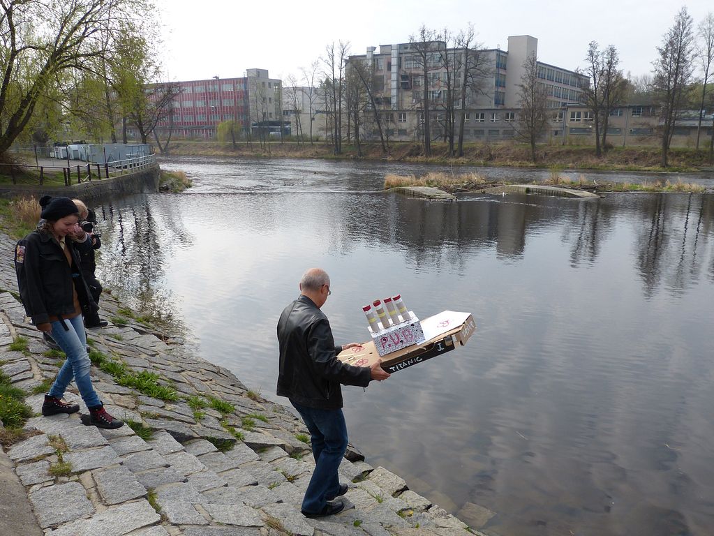 V sobotu 14. dubna 2012 v půl desáté dopoledne šly všechny obavy stranou. Speciálně pro tyto účely vzniklo z několika kartonových bedýnek a krabic plavidlo, které vzdáleně připomínalo Titanic a mělo nejlepší předpoklady stát se záhy modelovým vrakem. Alespoň takový byl záměr tvůrců.