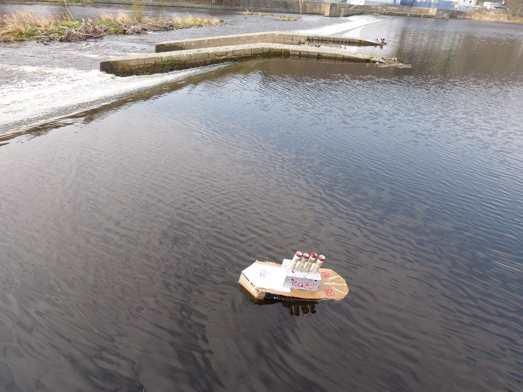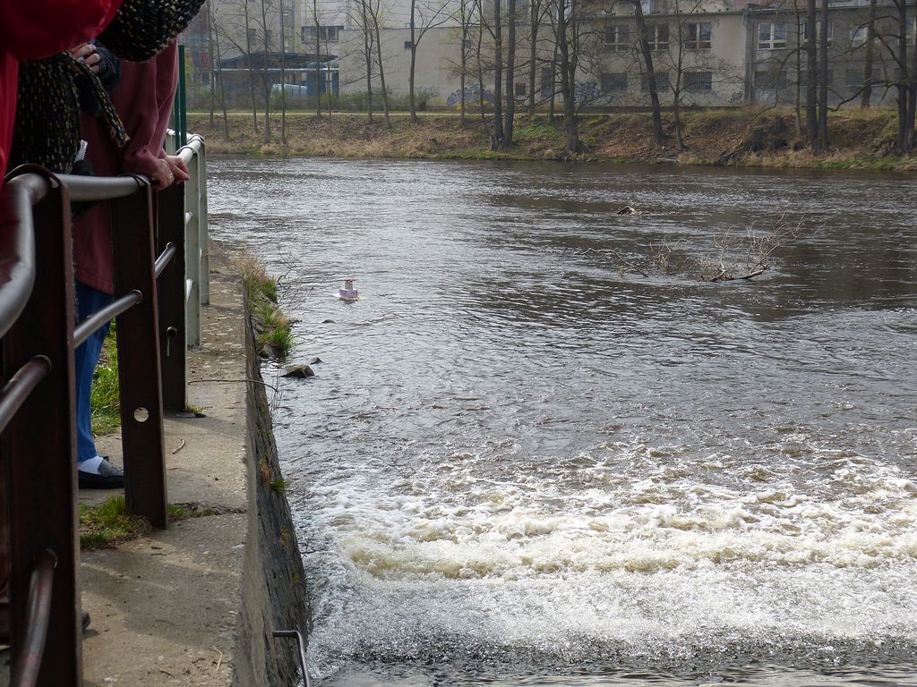 Ta myšlenka na kámen se záhy objevila, leč v okolí se žádný vhodný nepovaloval. Problém byl hlavně v tom, že ten karton byl zkrátka suchý i po nalití vody dovnitř plavidla.