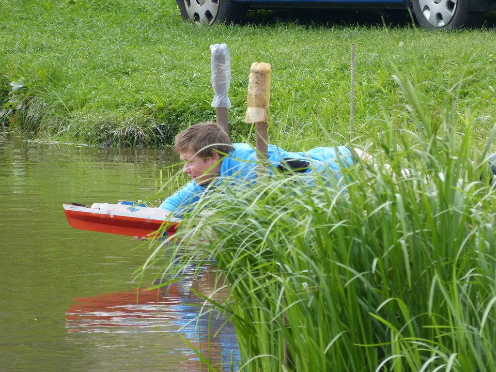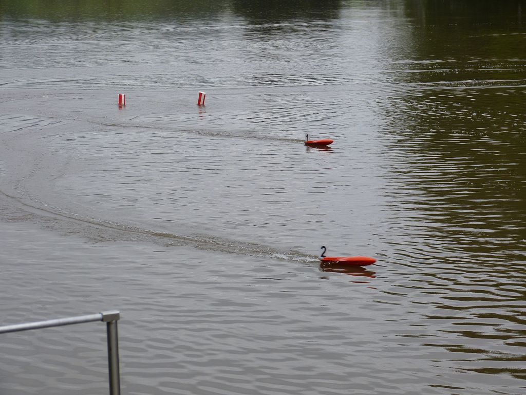 Na jízdy seniorů došlo až v odpoledních hodinách, takže mi mezitím přišla k duhu obědová klobása od pořadatele (startovné bylo symbolické a stěží pokrylo náklady). Během jízdy se Springerem jsem odrážel dotazy, zda model vůbec jízdu dokončí, když vypadá, že se s každou další vlnou změní v ponorku, ale v útrobách trupu bylo po jízdě jen pár kapek. Zkrátka má větší ponor než všelijaké Leadery, z jejichž útrob někteří junioři vylévali vody mnohem více.