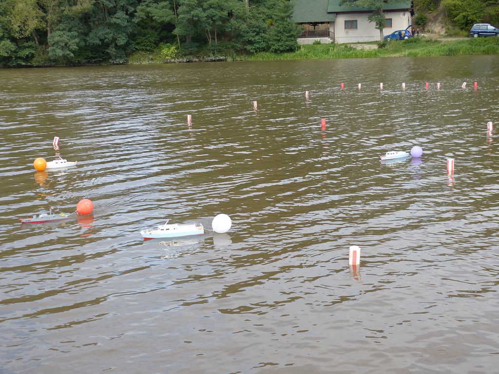 Po příjezdu jsem nelenil a jal se zapojit Springera do soutěžního klání. Jenže ejhle, po položení na vodu ani nezavrčel. Situace se dvakrát opakovala, až jsem vytáhl z plachetnice druhý přijímač a najednou vše šlo. Odtlačil jsem si svá dvě kola v jednošroubech za neustálého proklínání tvůrce tratě a pomalu čekal, co nastávající večer přinese.
