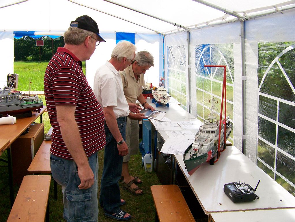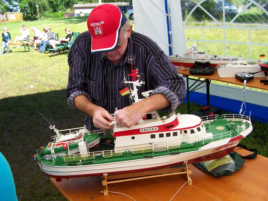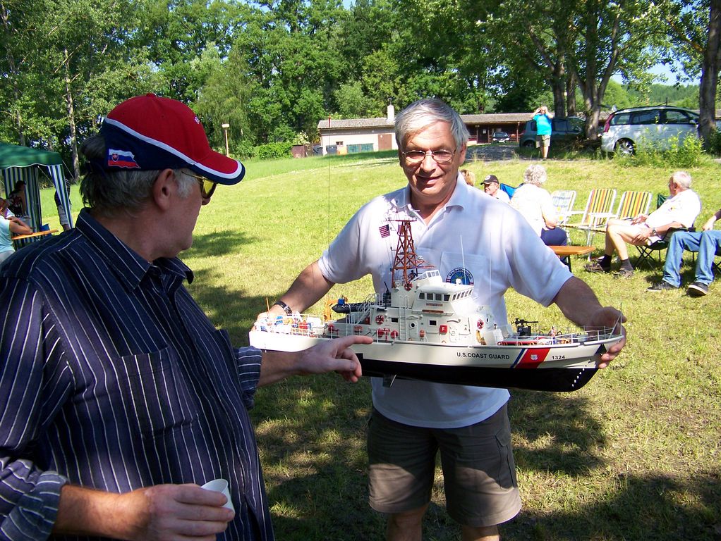 Po příjezdu jsem tedy zamířil rovnou k vyvěšené startovní, resp. průběžné výsledkové listině, abych se přesvědčil, jaká je situace. Objevil jsem alespoň dva rakouské parníkáře, což je pro pořádnou soutěž žalostně málo, ale narazil jsem i na jiná jména, která jsem rozhodně nečekal. Mám na mysli Štefana Abela a Petera Mikulku z dalekého Slovenska, se kterými se běžně potkávám na soutěžích maket plachetnic NSS. Tentokrát však naložili jiné modely, jelikož soutěž plachetnic na programu nebyla. Slovo modely není na místě, neboť oba přivezli nádherné makety.