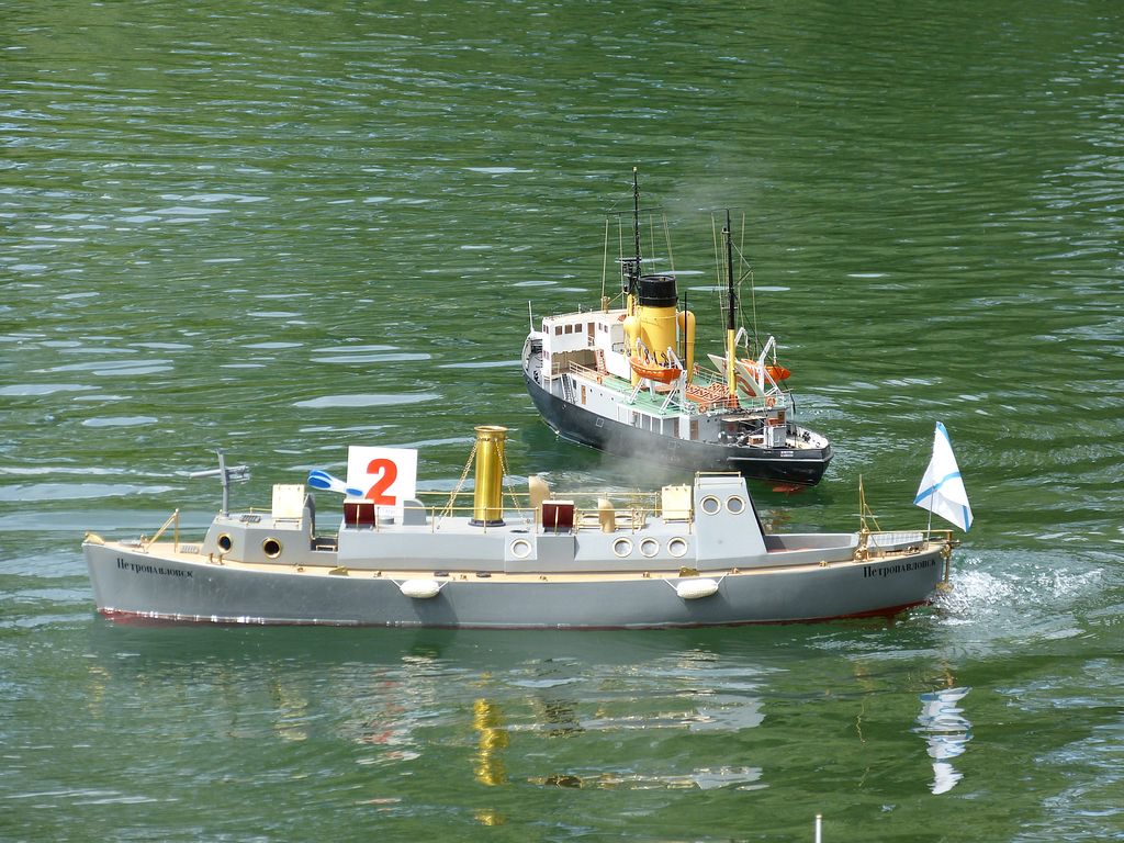 Půlhodinový závod je něčím, co se u nás nevidí. Na Vyžlovce máme problém dostat na vodu tři parníky naráz alespoň na několikaminutový okruh. Díky přepočtům délky trupu v Rakousku nemusí zvítězit nejrychlejší model, a tak měla naše zem mnoho želízek v ohni: Tomáš Kočí (K147), Mirek Šrámek (Renown) a Jiří Voráček (Petropavlovsk). To by v tom byl čert, aby zbylým čtyřem modelům neuzmuli nějakou medaili. První minuty se vyvíjely slibně, avšak na vodě to vypadalo jako na autodromu, jak o sebe modely ťukaly.