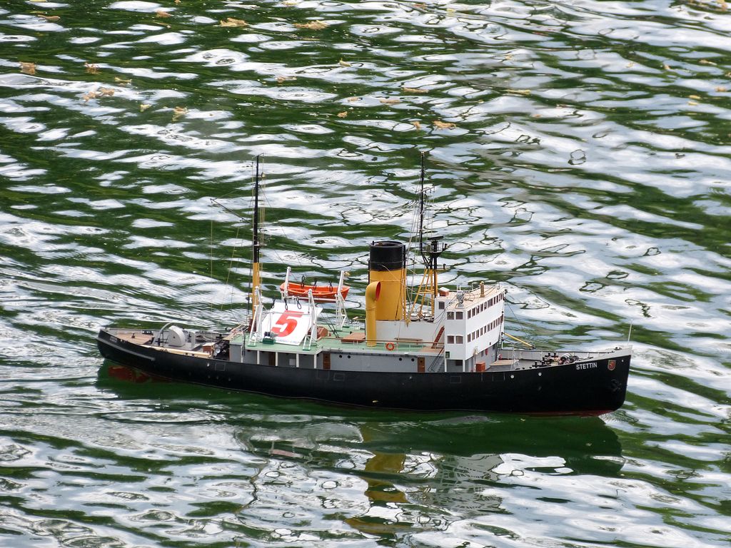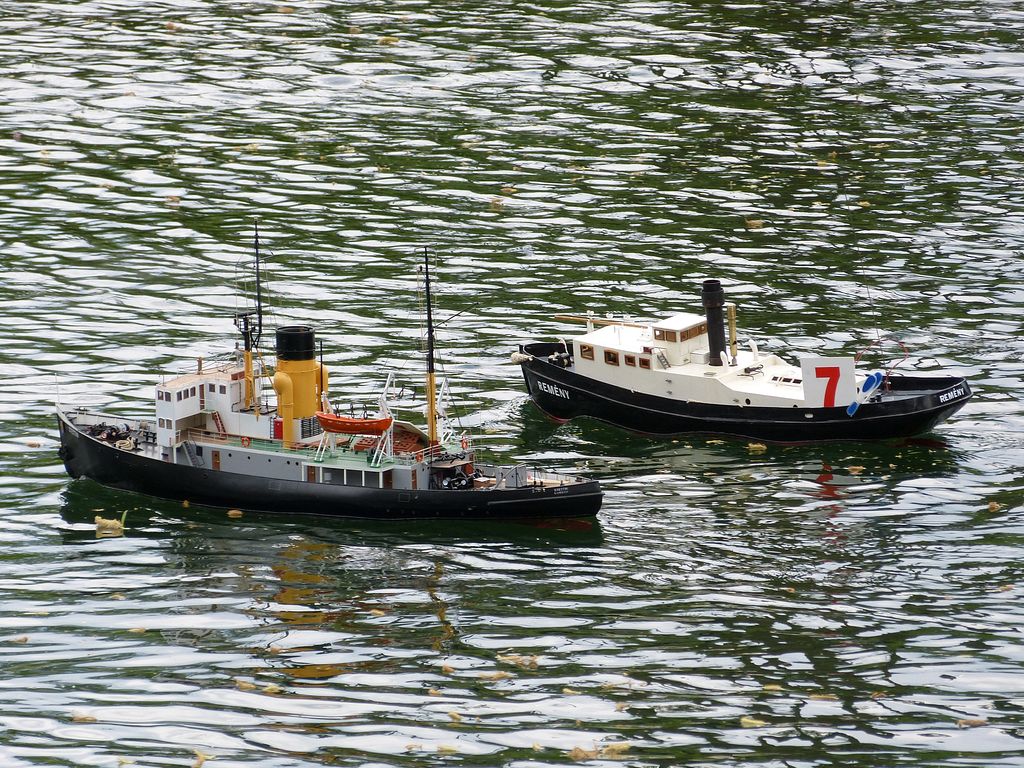 Bylo zajímavé sledovat, jak se pořadatelé poperou s tolika parníky na vodě. Prvním krokem bylo modely očíslovat, druhým přiřadit každému samostatného zapisovatele okruhů. (A nejlépe ještě ke každému kontrolora, abychom se dostali k Horníčkovo známému výroku: „Má-li každý člověk dvě babičky, je na světě dvakrát více babiček než lidí.“ Alespoň tak mi to při pohledu na personální zajištění připadalo![]()