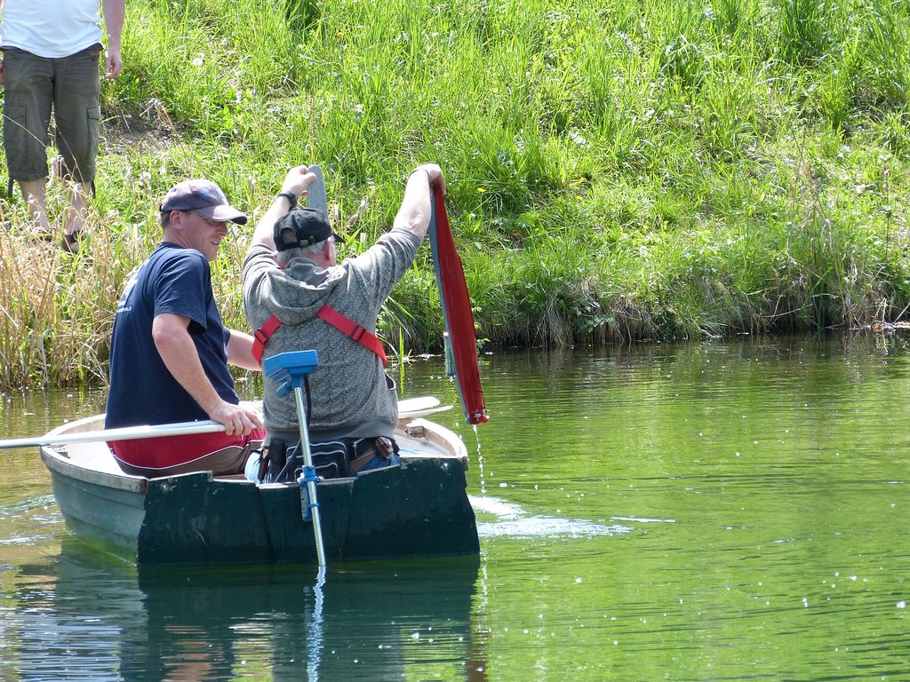 Půlhodinový závod byl po této nepříjemnosti odložen na později jako poslední bod sobotního programu u vody. Pak se na nebi začala objevovat temná mračna, až to vypadalo, že repete bude v dešti. To se naštěstí nepotvrdilo, a tak mohlo dojít k druhému pokusu, tentokráte s menším počtem startujících, neboť majitel krátce potopeného modelu do stejné vřavy podruhé vyplout nechtěl.