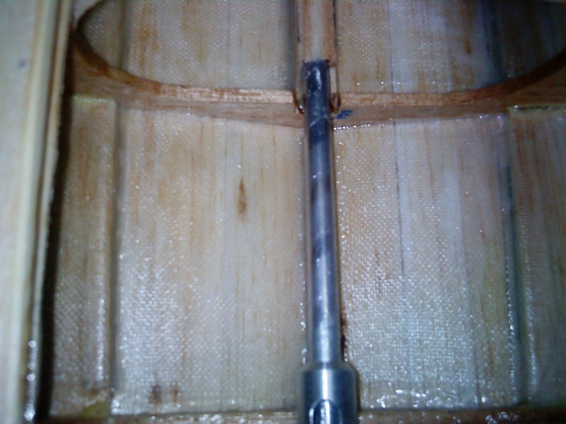 Nyní olemuji otvor do trupu smrkovou lištou 2x3 na stojato. Tady jsem použil gelový Epoxid NHP 30 min.