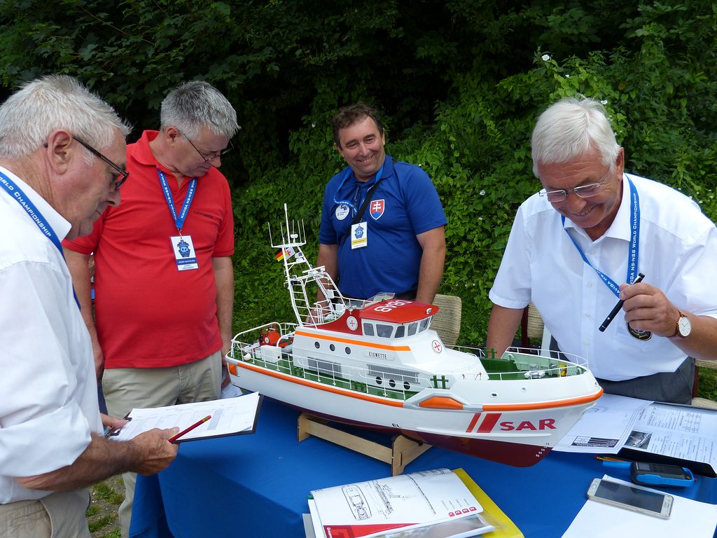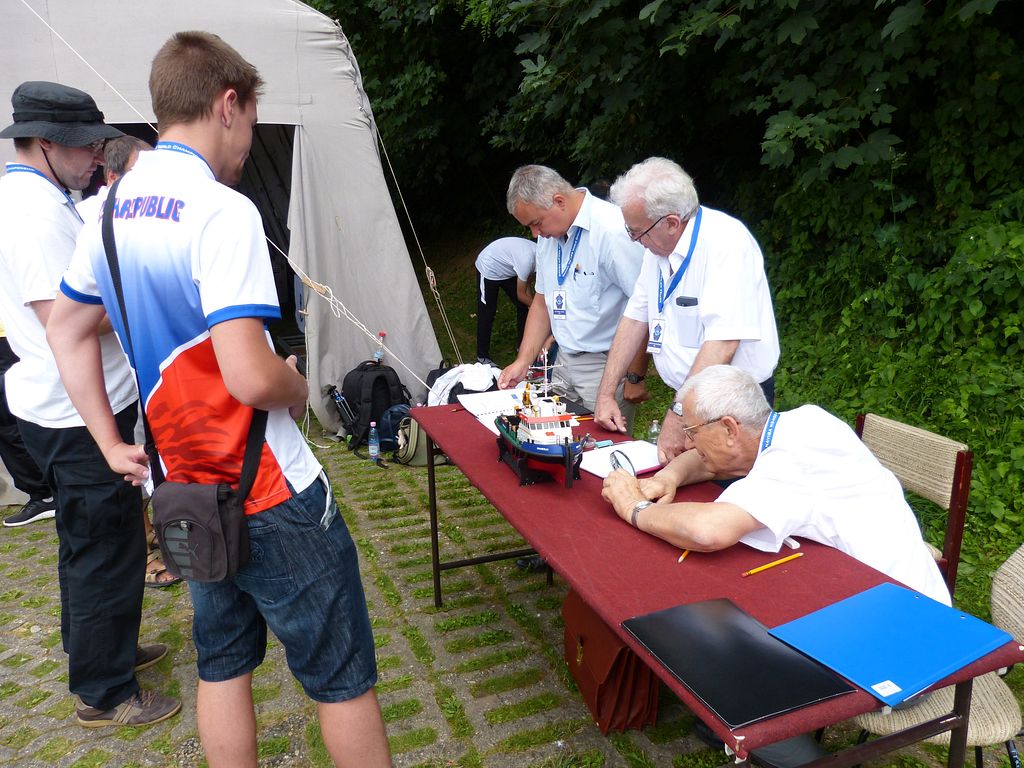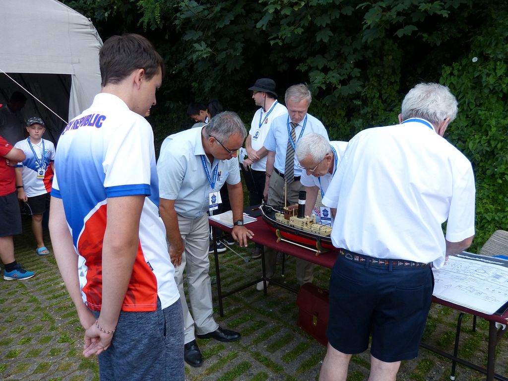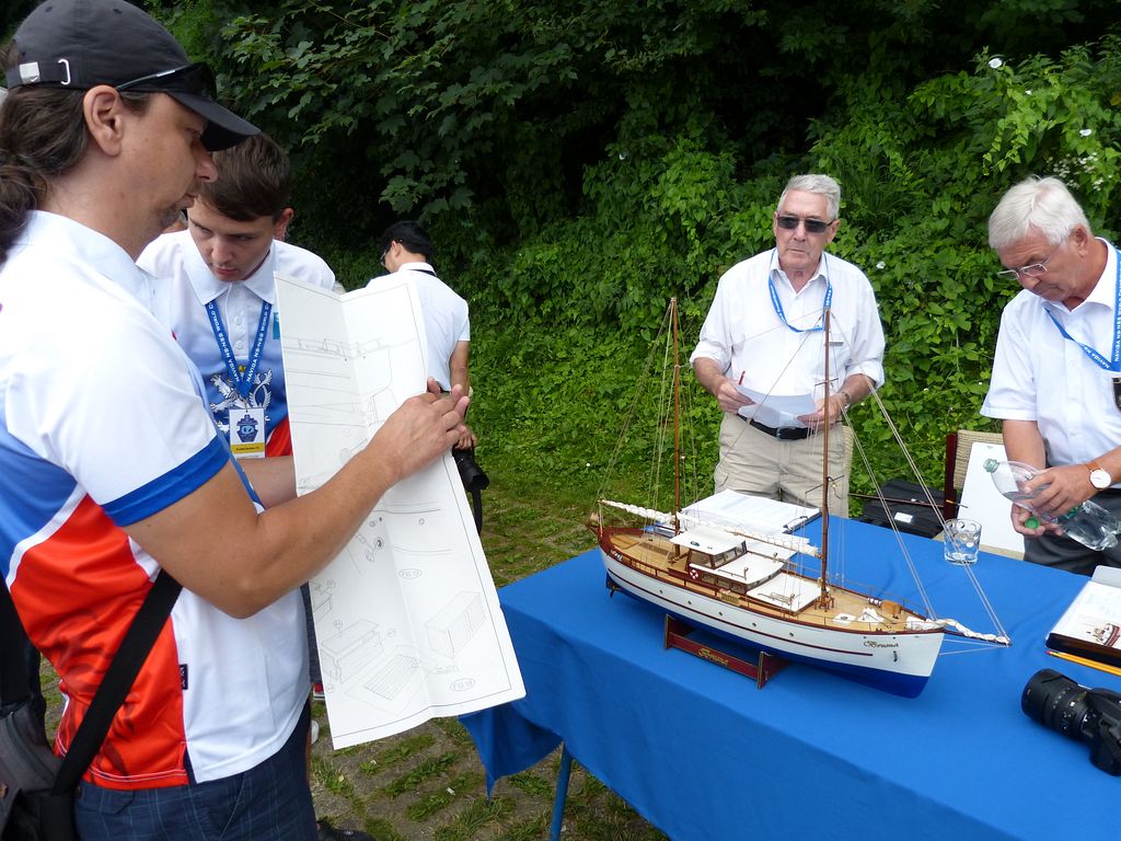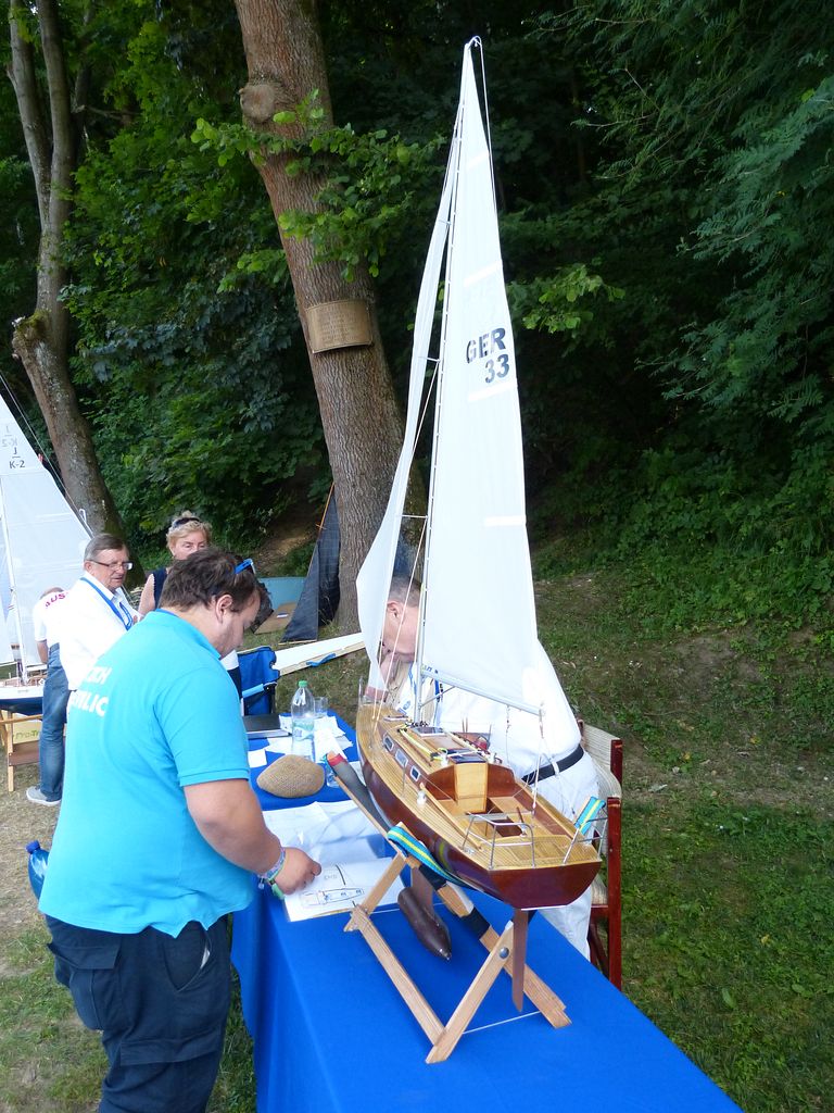 Bodování modelů plachetnic NSS-A se protáhlo přes celé odpoledne až do večerních hodin. Nedovedu si představit, jak dlouho by trvalo, kdyby česko-německo-polská komise rozhodčích vzala k ruce ještě metr a jala se všem přeměřovat plachty.