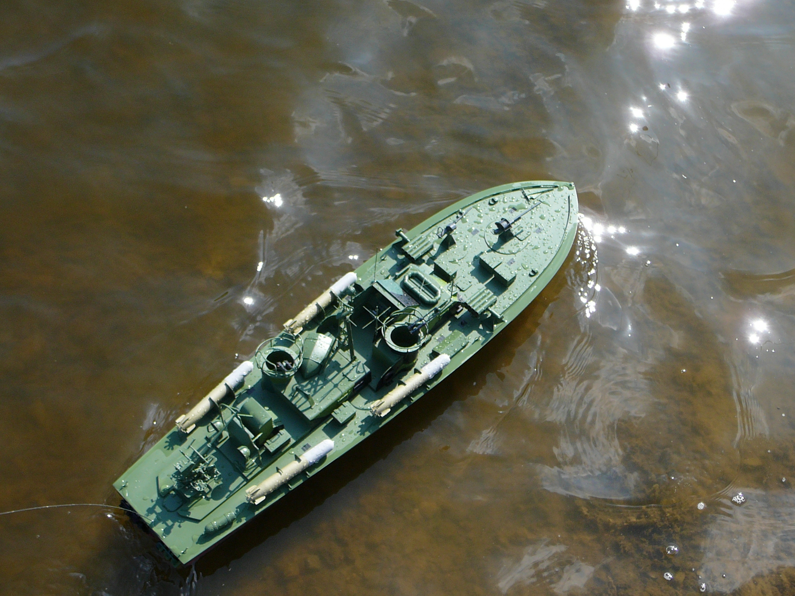 Při plné rychlosti je model velice citlivý na kormidlo (to je dost velké) a rychlejší výchylka, byť nevelká, způsobí dost rasantní reakci člunu: Rychlá zatáčka se skutečně velkým náklonem. Poprvé jsem se toho tak lekl, že jsem pustil obě páčky. I při lehké zatáčce je loďka v náklonu, tak jako skutečné PT-Boats (alespoň podle mně dostupných fotografií), ale při prudší zatáčce jde okraj paluby téměř pod hladinu. Měl jsem docela obavy, abych nepřišel o torpéda.