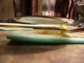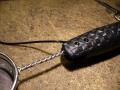 lepidlem a jedním šroubkem. Na držadlo jsem namotal jeden ze stříbrných drátků, které vedli do plácačky.