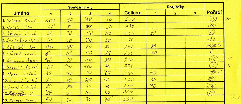 Okresního kola se zúčastnili modeláři z našeho DDM Jindřichův Hradec a lodní modeláři z Dačic - více napoví výsledková listina. Šimon Kopenec by byl sice třetí, ale jel mimo soutěž s lodí své sestry Aničky Kopencové z kroužku leteckých modelů, která jela s naší leteckou týmovou lodí. Třetí byl David Doležal z Dačic.