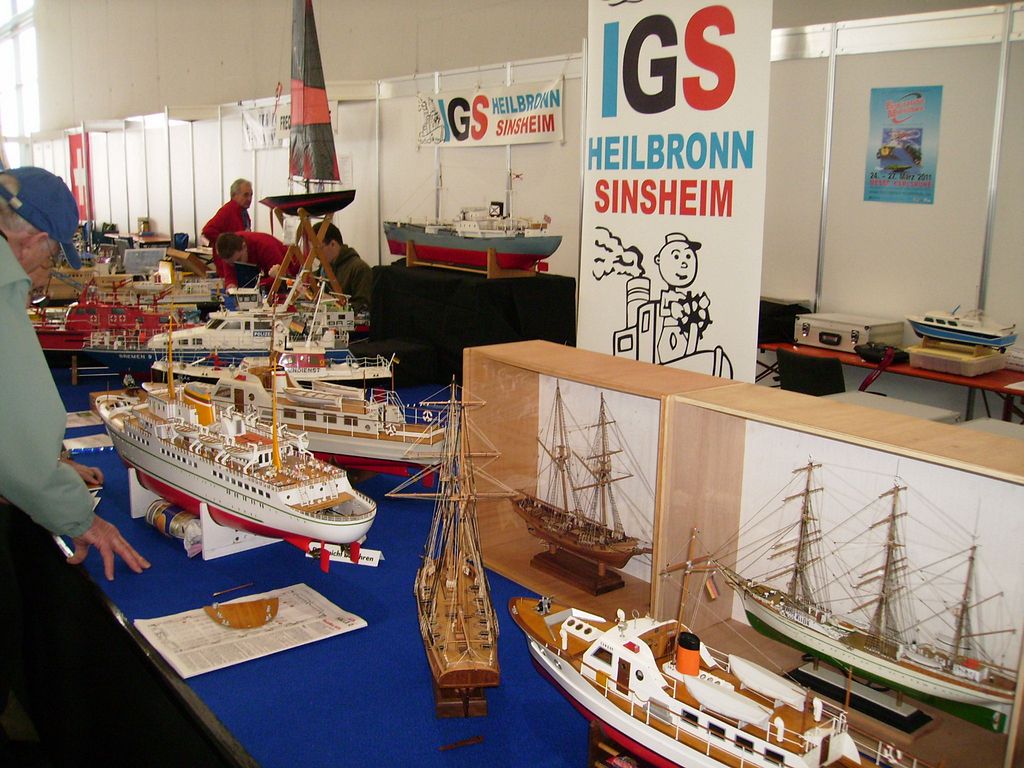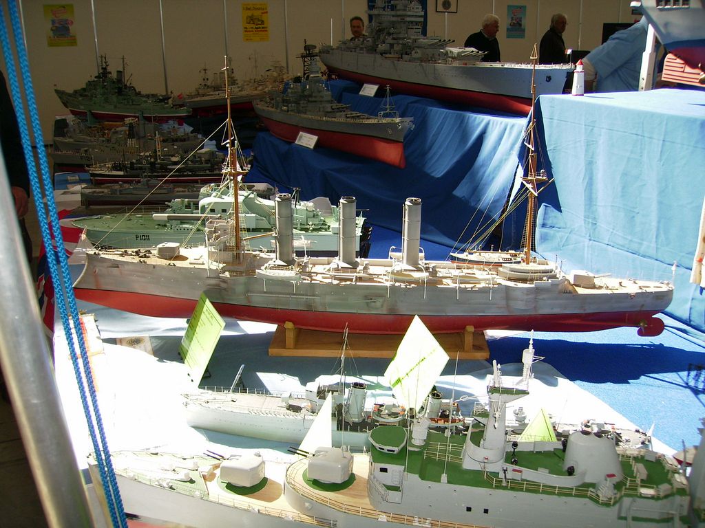 Ale jinak dobré - naštěstí tam byl Conrad, nakladatelství s časopisy, modelářský materiál, pár zajímavostí, samozřejmě hromada modelů, které mně zajímaly, takže jsem až tak netrpěl. U našeho obřího stolu byli modeláři s parními strojky a loďmi, moc pěkně jsem si popovídal nad jejich strojky a modely, skamarádili jsme se s pár vystavovateli, opravdu milí lidé, vyměnili si adresy a maily a pošleme si svoje obrázky. Tohle vyrovnalo eventuelní nepříjemnosti kolem dlouhého působení v hale s tisíci diváky, dokonce i manželka byla spokojená s navázanými vztahy. Vedle nás seděla paní, co pletla plavky a šatečky na paňáčky a panenky a oplétala či štrykovala potah na Fendery či oděrné balónky, vařila kafe a holky si prostě povídaly a já se zase motal kolem parních udělátorů a lodí a krátil si chvíli kolem zajímavostí, jak jinak.