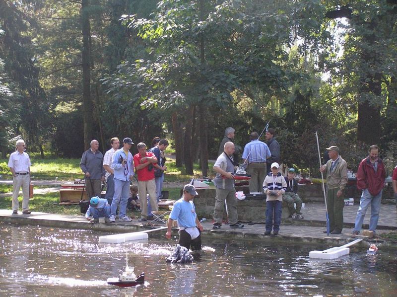 modelů lodí a po hladině se proháněly motoráky i pár plachetnic. Přema v broďákách stavěl trať a každý, kdo ho viděl,