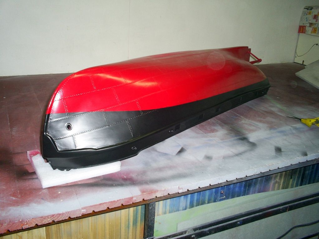 Barevná varieta je ještě předmětem dolaďování, nicméně trup je už v laku, zbývá stříknout ponorovou bělku a vyretušovat poslední nerovnosti.