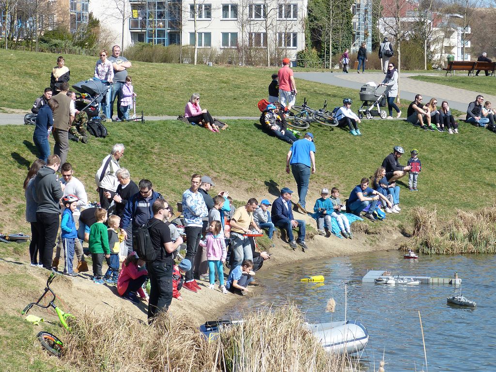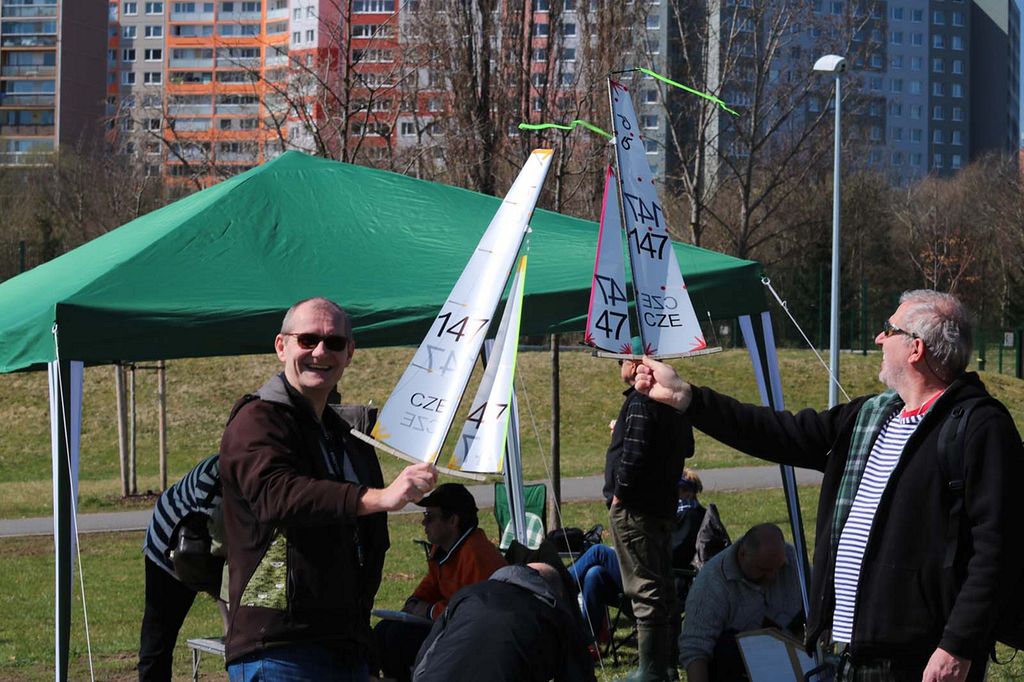 Po zimní přestávce jsme se poprvé sešli v sobotu 7. dubna za krásného počasí. Pohodový den u vody odstartovala zhruba hodinová příprava všeho potřebného (zde je na místě poděkovat všem, kteří přiložili ruku k dílu), co si soutěže plachetnic RG-65 a Footy žádají. Místem konání byl Stodůlecký rybník v Praze na Lužinách, což se ukázalo skvělou volbou, neboť prosecký Park Přátelství jednak nedisponuje potřebnou vodní plochou pro plachetnice RG-65, a pak v tamních jezírkách po zimě ještě nebyla voda, což zjistili účastníci středečního srazu…