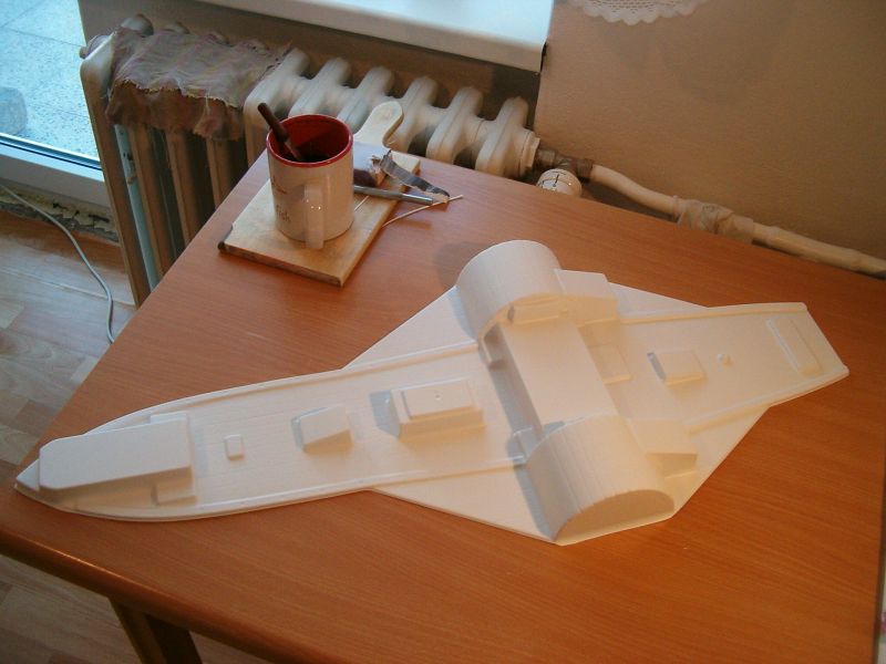 modelu tak vychází moc vysoko a trup s rovným dnem je velmi nestabilní. Hned na místě jsem provizorně prořízl kapsu