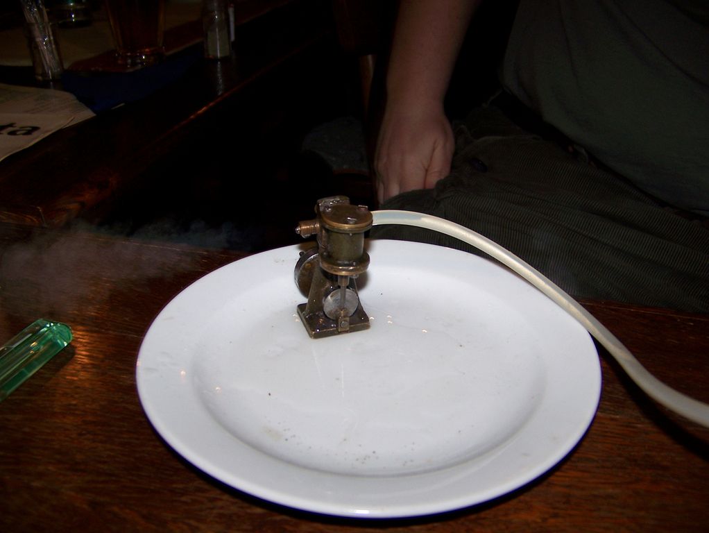 Po chvíli dal Ivan kolovat též keramický hořák, což byla neklamná známka toho, že je na setkání po všech směrech připraven. Zbývalo naplnit kotlík vodou, připojit bombičku a zapálit. Připojené video zachycuje, že k radosti parníkářům stačí málo.