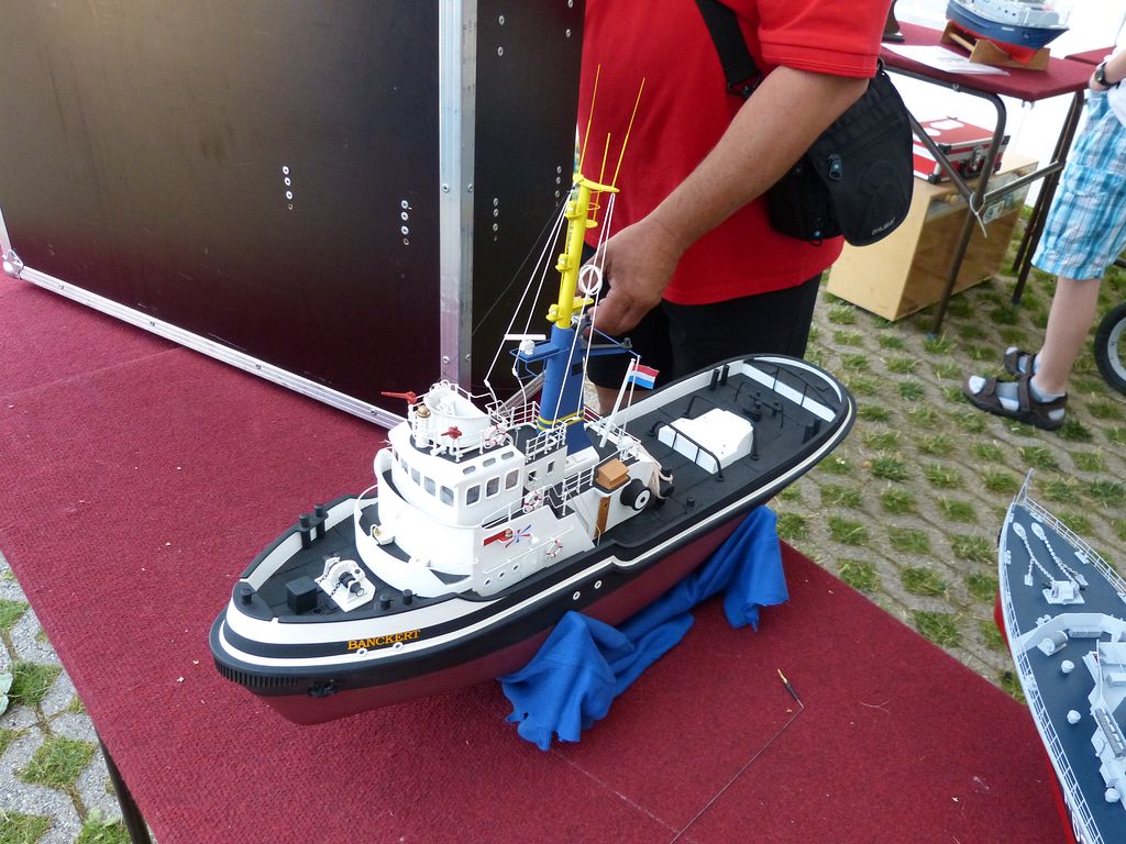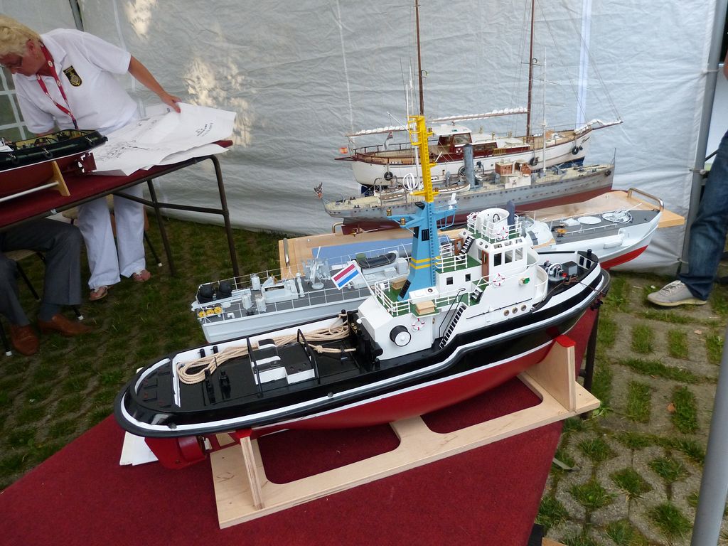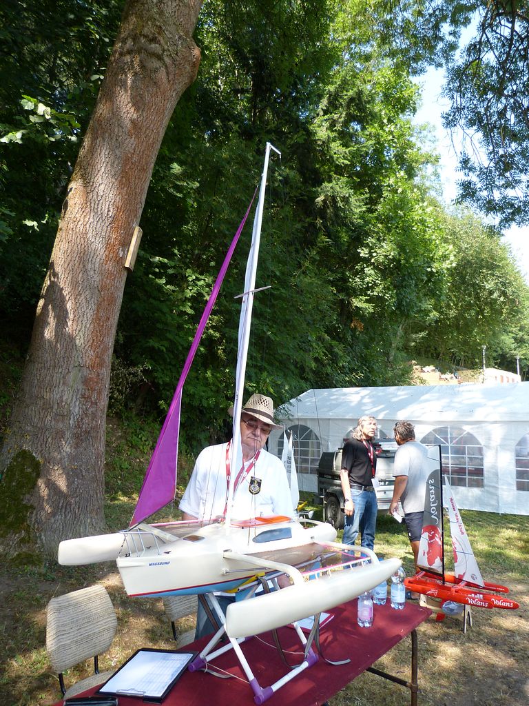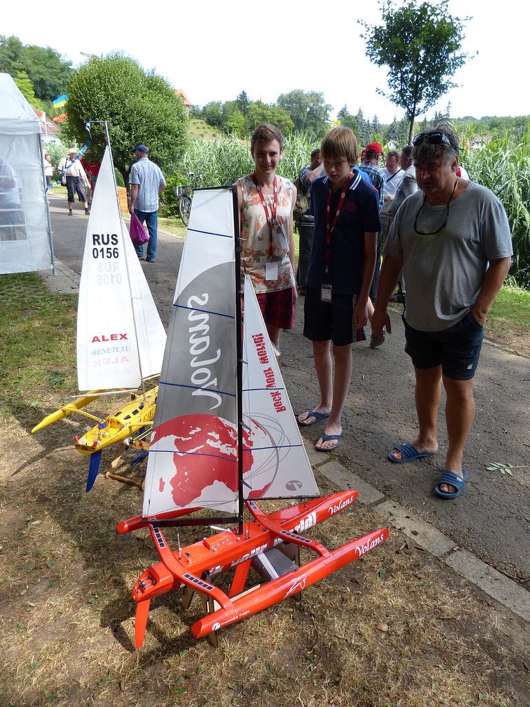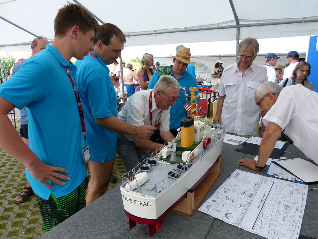 Ve vedlejším stanu začíná ve stejnou dobu bodování NSS-A, zde nejprve vzhledem k počtu lodí – 10 juniorů, 12 seniorů dochází k rozdělení na juniory a seniory, takže úplně první ze všech je na řadě Tomáš Jakeš s Amati (78,33b), obdrží několik připomínek ke sklonu špičky a výztuhám plachet. U plachetnic byl posuzován jen vzhled a shodnost s podklady na vážení a přeměřování plachet pokud jsem si všiml, nedošlo. K zajímavému prošetřování došlo hned po nástupu juniorů, u Rusky Raisy Basiny se objevily pochybnosti, zda je ještě juniorkou. Nakonec nepředložila nějaký osobní průkaz, ale Basin přinesl nějaké prohlášení na hlavičkovém papíru ruského svazu a Raisa byla juniorkou. Po plachetnicích NSS-A mělo na stejném místě od čtyř hodin začít bodování F4B seniorů. V tuto dobu rozhodčí NSS pomalu končili s juniory a ještě je čekali senioři, ale s plachetnicemi se stejně pod stan nevešli, takže nakonec bodování F4B nepřekáželi. NSS-A senioři, zde máme jednoho zástupce s velkou historickou plachetnicí Endeavour Milana Kroupu, která pak na vodě oproti modelům moderních rychlých plachetnic nemá moc šancí. Bohužel už ani poctivá „dřevěná“ modelařina nepůsobí na rozhodčí natolik, aby alespoň v hodnocení stavby přeskočily moderní plastové výtvory, takže získává jen 88b oproti 97,3b za moderní plastový New Zealand.