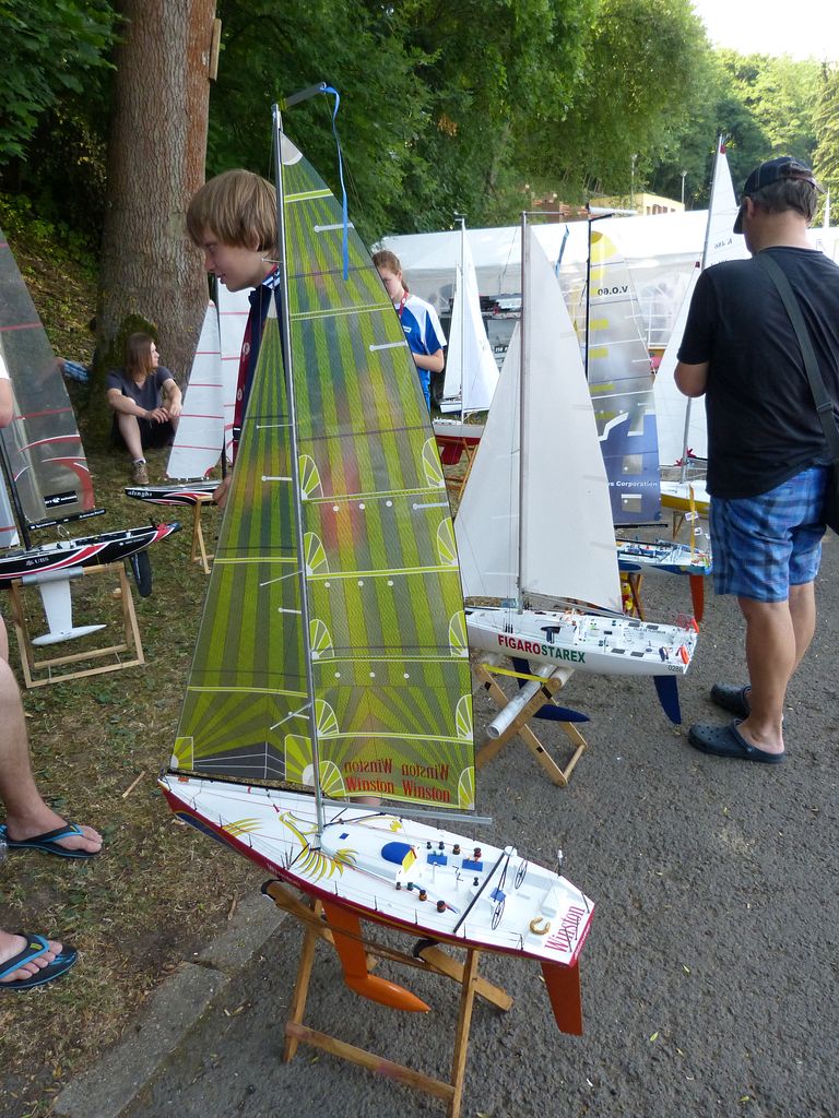 V NSS-B je 13 seniorů a dva junioři, mezi nimi dva naši zástupci Josef Mrákota s Jolie Brise s nejvyšším bodováním v plachetnicích – 98,33b a Jarda Zeman s Brilliantem – 89,67b, bohužel obě plachetnice patří k těm větším méně obratným, takže uvidíme, jaký bude vítr. Alespoň v této kategorii plachetnic se zatím objevují jen klasické stavby modelů lodí z první poloviny 20. století, v tom duchu jak byly tyto maketové plachetnice zamýšleny. K bodování NSS-B jsou nakonec přihozeny i plachetnice NSS-C, ve které je pouze pět skoro jen „československých“ závodníků. Lenka Mrákotová s Jestrem, o kterém rozhodčí stále neví, jestli bude v NSS-B nebo NSS-C, nakonec to částečně nechávají na závodnici s dotazem, zda chce jet NSS-B nebo NSS-C. Končí tedy u C-ček s 83,33b. Dalším našim je René Walenta s Pionýrem – 75,33b a František Chmelka s No Name – 70b. Českou trojici doplňují Štefan Abel se Sultanou – 84,33b a Bělorus Jurij Lukjaněnko s Zoll Kutter – 65b, který dolepuje některé díly ještě před rozhodčími.