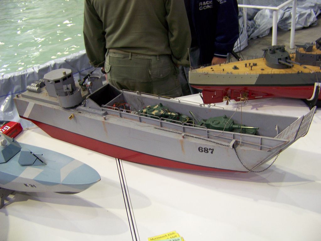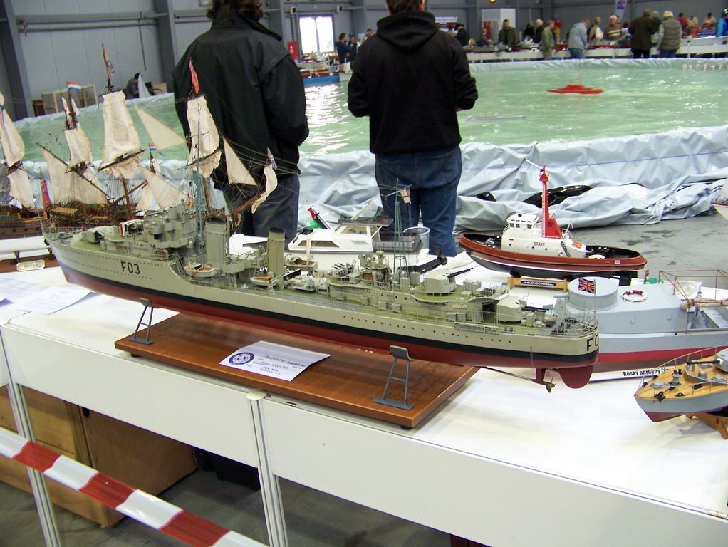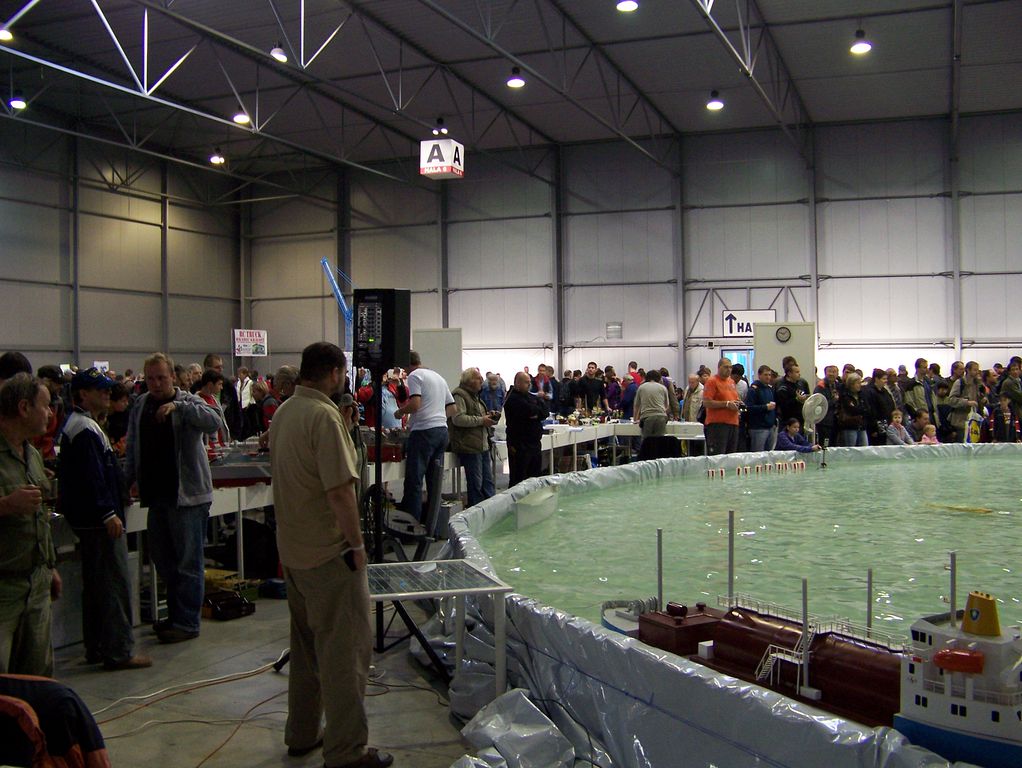 Ještě musím vzpomenout jednu drobnou podpásovku ze strany pořadatele veletrhu. Po celý pátek jsme vedle bazénu viděli nevyužitou plochu pro automobilové modely. Jaké však nastalo naše zděšení v sobotu, si neumíte představit. Celá tato plocha se totiž proměnila v závodiště, kde automodeláři pořádali své závody za doprovodu hlasitého ozvučení, čímž komentář dění u bazénu zanikal, což by bylo to nejmenší. Daleko horší bylo to, že automodeláři své depo přitiskli až ke stolům s lodními modely, čímž se k polovině z vystavených modelů dostalo pouhé minimum diváků, kteří sebrali drzost a do malé uličky se procpali.