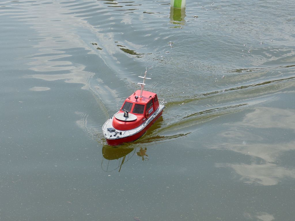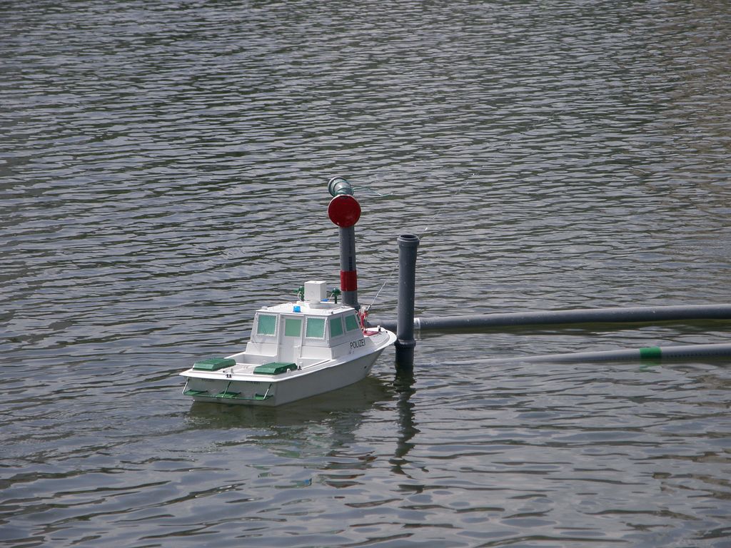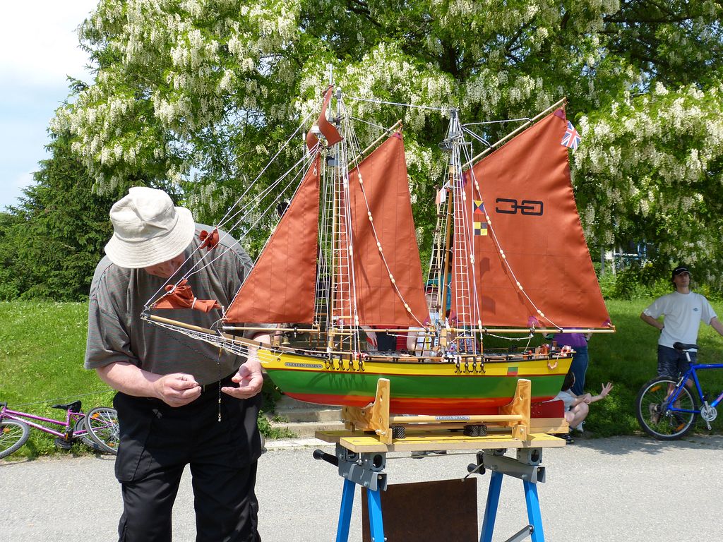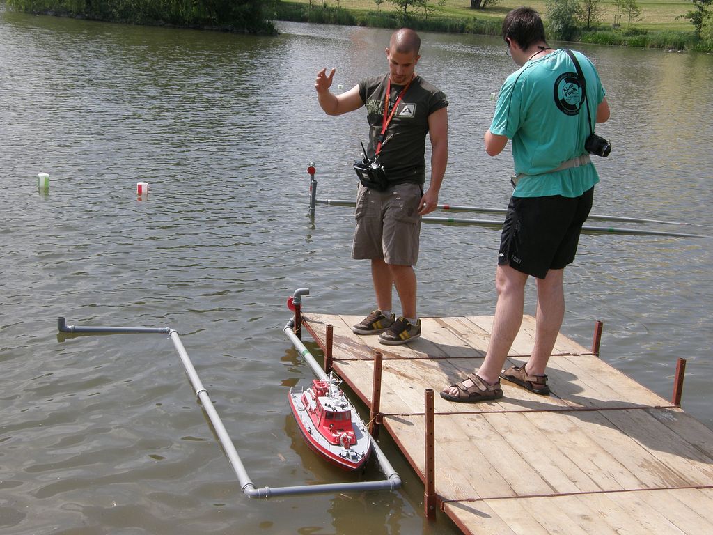 Jelikož jsem byl v minulém roce kritizován, že je průplav moc daleko od břehu, nainstaloval jsem jej poblíž mola tak, abych si vystačil s broďáky. Liboval jsem si, jak jsem to hezky udělal, avšak jen do prvních soutěžních jízd. Modeláři s metrovými modely měli potíž na tak malém prostoru manévrovat.
