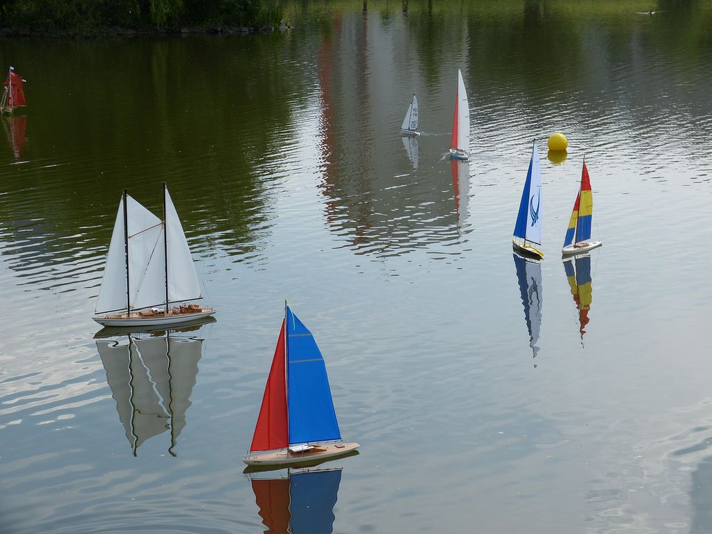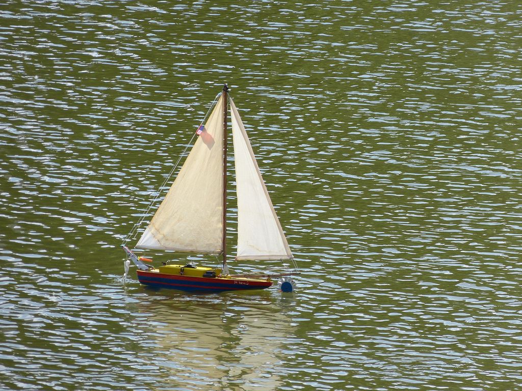 Jelikož MB/RomanT chvátal domů a příliš nefoukalo, zkrátili jsme soutěžní jízdy na dva půlhodinové závody s přidáním desetiminutového limitu na dokončení kola. Třetí jízda, putovní regata, měla pevně stanovený počet dvou kol s tím, že modelář musí celou nádrž rovněž dvakrát obejít. Kdo se během stoupání na vrcholovou bójku u hráze zapomněl na špatné straně, měl pak po provedení obratu, kdy plachetnice chytla vítr do zad, docela naspěch.
