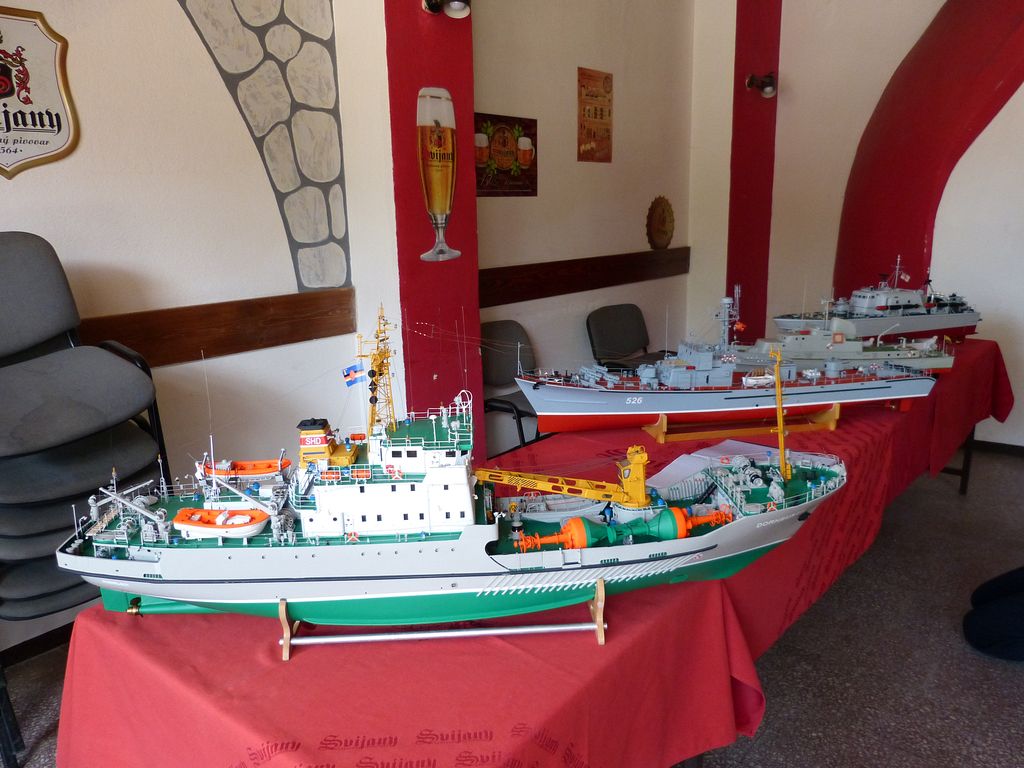 Na poli bodovaných lodních maket se objevilo několik novinek. Některé jsem zaregistroval během stavebního hodnocení, jiné až u vody. Jistě by se našlo i několik nových lodí F4A, ale o těch by poreferoval spíše Ivan Grňa, který jim dělal vedoucího startoviště na protilehlém břehu než bylo startoviště bodovaných maket, kde jsem pro změnu „velel” já![]()