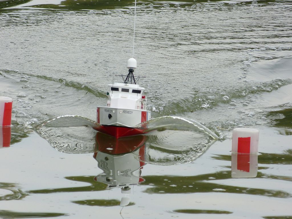 Sedm lodních maket bylo na vyčleněné dvouhodinové časové okno tak akorát, takže zbyl čas jak na tři jízdy, tak na následující rozjížďky o druhé a třetí místo. Abych byl upřímný, trať se nám nepodařilo sestavit tak dokonale, jak bych si představoval, ale měli jí všichni stejnou.