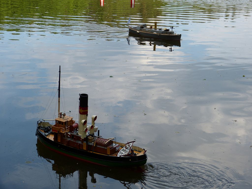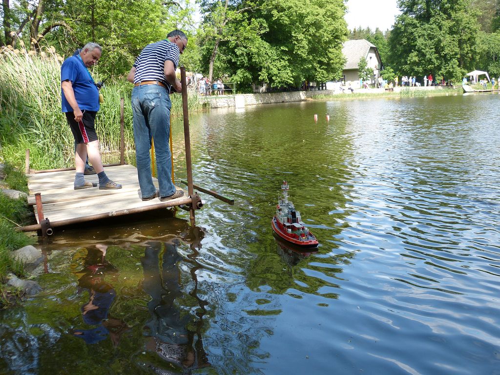 Pak patřila voda parníkům, což se neobešlo bez větších či menších zádrhelů. Předně je třeba říci, že se kolem motalo mnoho nezasvěcených diváků, takže zatápění pod kotlem i samotný transport k vodě byly vskutku adrenalinové. V Korvetě upadl kablík z ventilátoru, a tak první dvě kola model absolvoval bez nástavby. Na to třetí jsem kabelu domluvil, aby ještě chvíli na svém místě setrval, takže se mohlo jet s nástavbou.