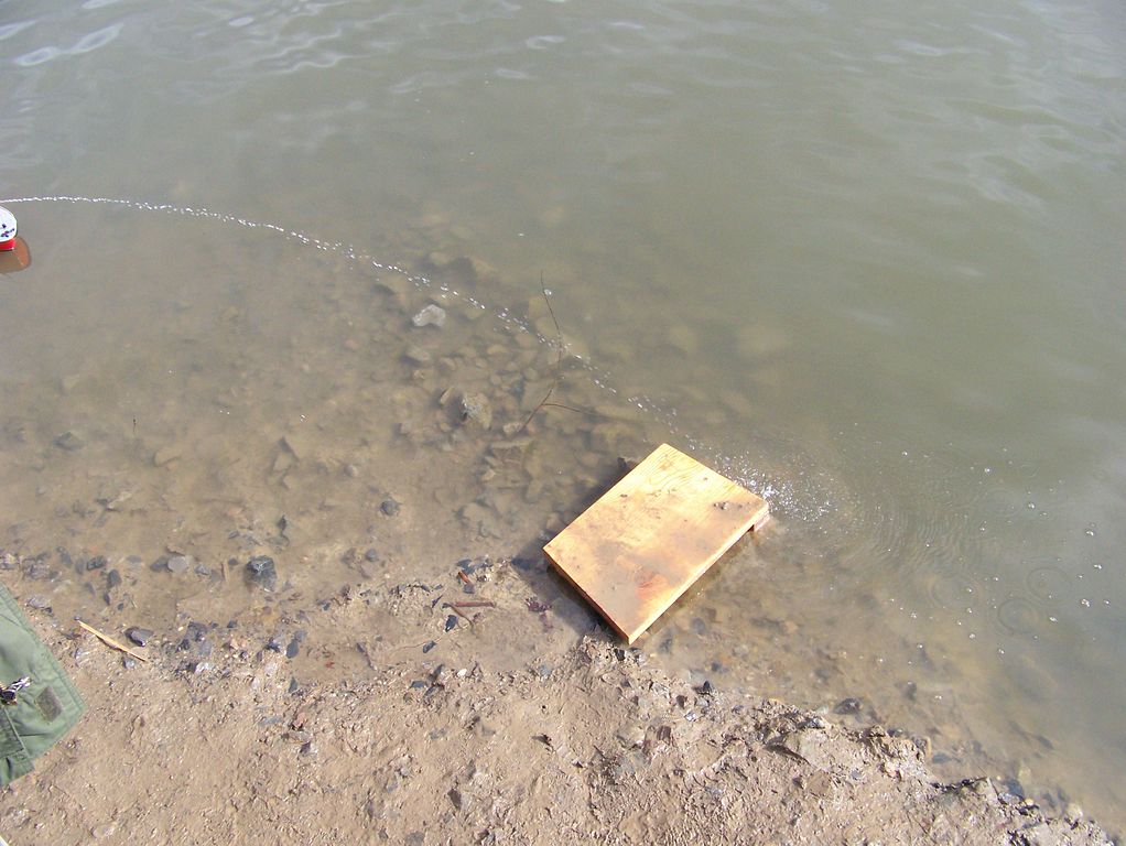 Když už je řeč o těch vanách, tak kolektiv kolem vítězného týmu z Mostu v těžkém TT přivezl též zbrusu novou atrapu taženého kolosu, jejíž případné nasazení bude další zatěžkávací zkouškou soutěžních týmů. O zátěž se stará zaplavovací komora. Do vody to šlo relativně hladce, vyzdvižení z vody bylo asi zajímavější, jenže toho jsem se nedočkal. Pánové se totiž vydali na pouť kolem celého rybníka, avšak u stavidla se jim nějak zalíbilo, takže jsem na návrat nečekal.