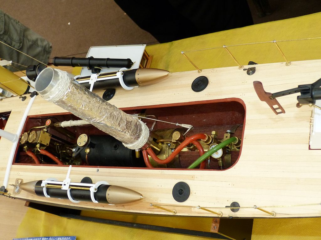 Parník Saturn (1:20) ruského modeláře Alexey Chuchumasheva na první pohled zaujme snad jen posádkou, jinak to po stránce exteriérové není nic neobvyklého. Brada člověku spadne až po sejmutí nástavby. Jednak díky důmyslnému systému, kdy se sejme téměř celá paluba naráz, a pak množstvím naleštěných aparatur v podpalubí. Vše se blýská, až oči přecházejí. Je-li vše doloženo fotodokumentací ze stavby, nemůže být debat o tom, že by strojovnu se šoupátkovým strojkem někde sekali do stavebnic jako Baťa cvičky. 97,67 je po právu nejvyšší udělený počet bodů za provedení parní strojovny. 96 bodů za model dává naděje na celkový úspěch a obhajobu titulu mistra světa.
