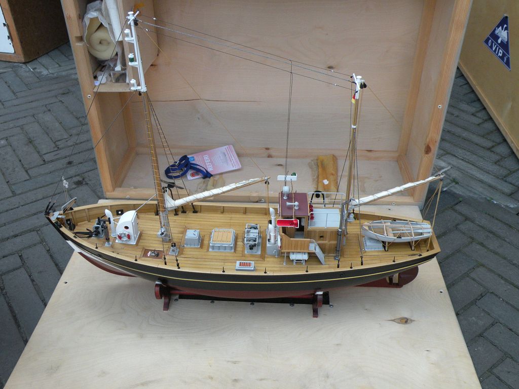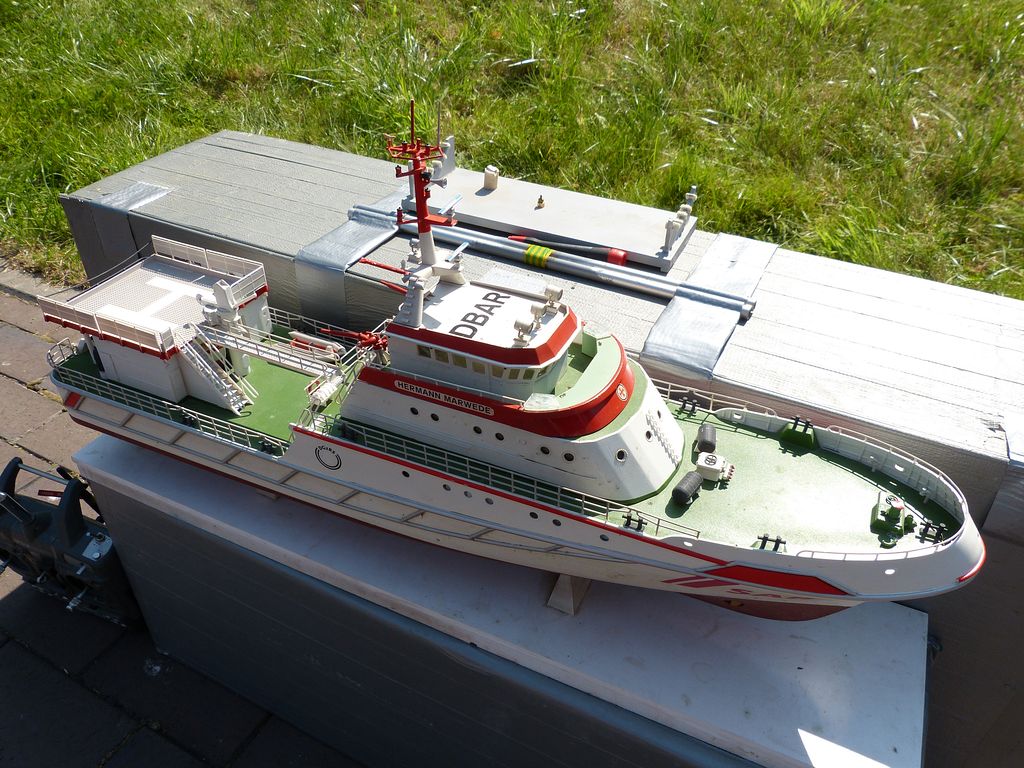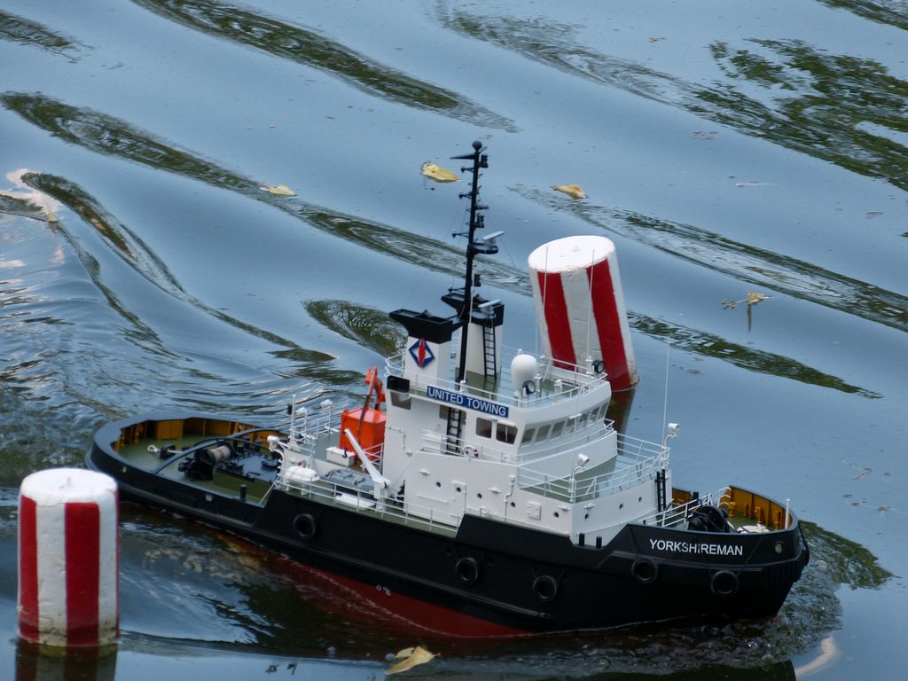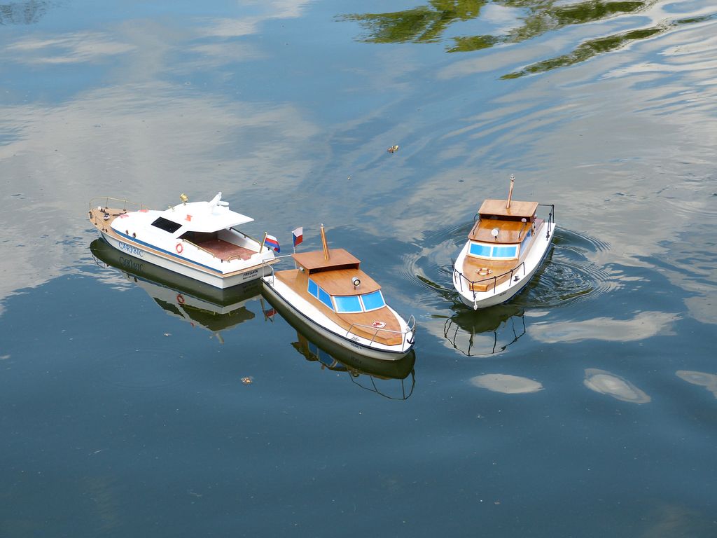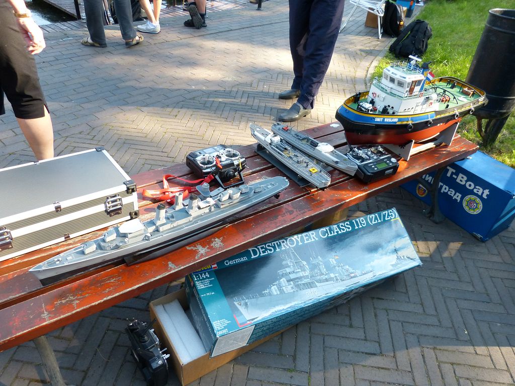 Start F4A proběhl dopoledne ještě před zahájením, junioři Tomáš 98 – dotek skluzem zadní bójky, Ondra 95 – nevýrazné zastavení v doku – pohyb lodě. Já v seniorech 92 – první dlouhá, druhá dotek zadní bójky. Takže ještě není ani zahájeno a my jsme někde na chvostu, jedině 98 Tomáše díky slabým výsledkům i ostatních zatím stačí na 2. až 6. místo. Po dojetí F4A začínáme shánět, kde bude bodování F4B, zatím nikde žádné informace nevisí, loňské místo je zcela prázdné. Jediné, co nás trochu uklidňuje, je, že zatím máme na kontrolou rozhodčí, ale ani ti nic neví, jen nás odkazují na velkou zděnou budovu v parku, tam v suterénu nacházíme pracoviště s počítačem – prázdné a místnost pro uskladnění lodí. Už je čtvrt hodiny po plánovaném začátku bodování F4B junior a stále nejsme na správném místě, pak nám někdo řekl, že to bude asi venku na druhé straně budovy. Za budovou je opravdu několik stolků a modelů. Chvíli po nás na toto místo docházejí i naši rozhodčí, stoly ještě blokují s F2A, takže ještě chvíli čekáme. Z juniorů jde první Tomáš, u Falkeho nacházejí jedny otočené dveře, chvíli je diskuze o poloze kotvy, bohužel z našeho mistrovství nemá zažitou diskuzi s rozhodčími, takže nedokáže prodat, co je na lodi jiného než díl ze stavebnice. Nakonec dostává 85,33 bodů. Po něm jdou na řadu tři Rusové s letitým Smit Russland (překreslený Smit Roterdamm) 87 b, policejní hlídkový člun Bremen a nakonec taky letitý se zvlněnou palubou Canute 91 b. Po juniorech je na řadě F4B senior, první je polský Yorkshireman, také už minimálně osmiletý, oproti dokumentaci ze stavebnice má dost detailů vlastních, ale některé vypadají hůře jak ze stavebnice. Oproti mně má v dokumentaci přiloženo asi 15 fotografií Yorkshiremana a pár sesterského Irishmana, který má jiné zbarvení, takže tyto rozdíly musí vysvětlovat. Také na jiných fotkách rozhodčí nacházejí drobné rozdíly – výška světlometů, poloha záchranných kruhů... Rozhodčí se trochu diví, že si bodování prohlížím dost z blízka, dojde jim to, když se podívají na následující loď ve startovní listině. Když nacházejí opět Yorkshiremana, požádají Poláka, aby loď nechal u nich na stole a já stavím okolo svou. Opět se vracejí k některým vytýkaným rozdílům a porovnávají je s mým provedením, u některých rozdílů argumentuji mými výkresy, kde požadované detaily nejsou. Při samostatném hodnocení podle mých výkresů mi nakonec nic nevytýkají, na vedoucího rozhodčích – Maďara – dostávám pochvalu za vyznačení svarů na palubě a jednolitý lesk (mat) na trupu (Polákovi vyčítali lesklé ponorové znaky). Nakonec Yorshiremany ohodnotili – polský 85,67, můj 90 b. Po mně jde na řadu Němec s remorkérem Resolve – 95 b, Maďar s moderním křižníkem z čínské stavebnice Kalinin – 96 b, pak už jen Rusové: rybářský kutr od Graupnera Elke 95,33 b (na MS 2013 87,3 b) a Bismarck 97,67 b.