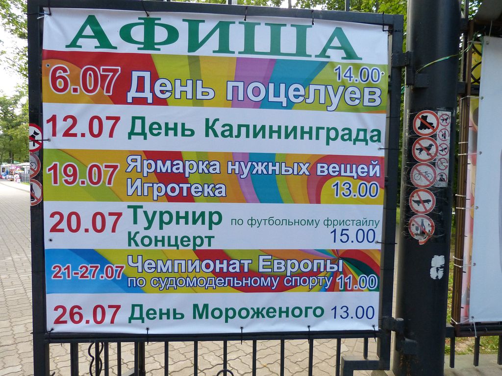 Dnes začínají jízdy F4B. Tomáš jede první ze všech, hned první vrcholovou přejel, na podruhé málem taky, ale nakonec to dovnitř s vyvrácením bójky nacpal, v doku tak jako celý tento den ho proud na konci doku dotlačil na mantinel – takže 87 b. V seniorech nastupuji druhý po polském Yorshiremanovi. První průjezd vrcholové je nakonec díky použití příčného pohonu s dotekem, podruhé sice trochu klidněji, ale také s dotekem. Dok se po sledování, co celý den dělá, snažím urychlit a zastavuji co nejdál na konce, takže nakonec 96 b. Odpoledne je bodování F4C bez naší účasti, v plachetnicích se zatím také jen boduje, takže se jedeme podívat do okolí Kaliningradu.