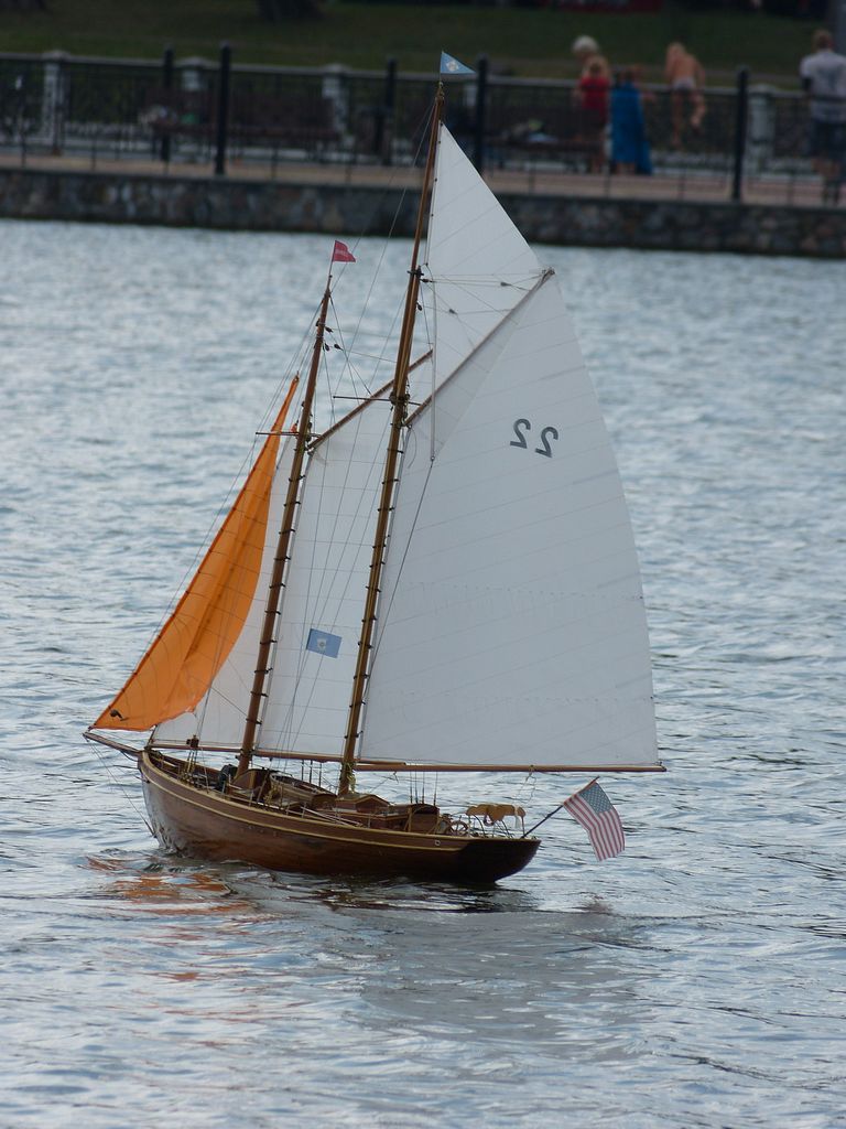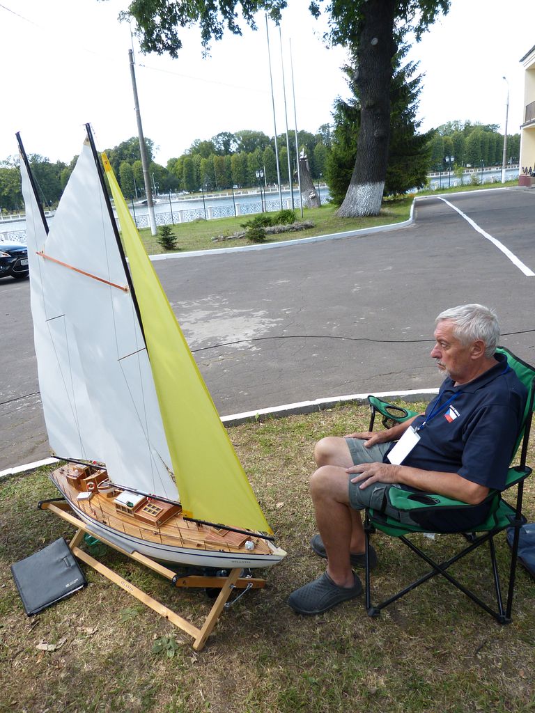 Namátkovým měřením plochy plachet bylo zjištěno, že ten můj zázrak jí má o něco větší než vloni, kdy se konalo mistrovství světa (přísahám, že jsem s plachtami od té doby nic nedělal). Naštěstí jsem se ještě vešel do povolené odchylky, nicméně pro časy příští to znamená zhoršení již nyní špatného koeficientu. Po právu mi bylo vyčteno, že na palubě rybářského škuneru není jediný rybářský člun. O nedostatcích svého modelu vím, jen jsem líný je řešit. Tím spíše, jde-li o maketové detaily, které nikdy nebyly mým koníčkem při pobytech v dílně. 68 bodů jest krásným výsledkem, sám bych si dal ještě méně.