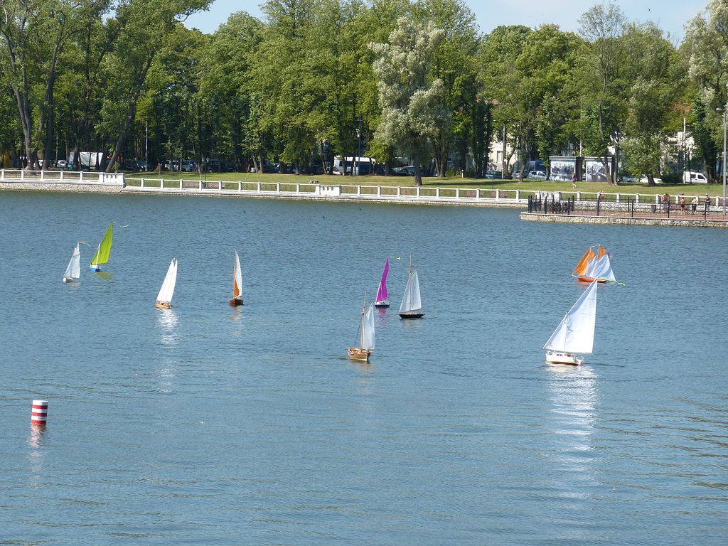 Poté pro plachetnice NSS následovala jen regata, kam se z našich přihlásil jen Přemysl Mudra. Regata byla situována o 200 metrů dál na místo, o kterém jsme se původně kvůli rozmístění velkých bójek po příjezdu do Kaliningradu domnívali, že bude určeno plachetnicím. Cožpak o to, promenáda po břehu by tam byla krásná, jen ten přístup k vodě by byl přes zábradlí a kolmou stěnu horší.