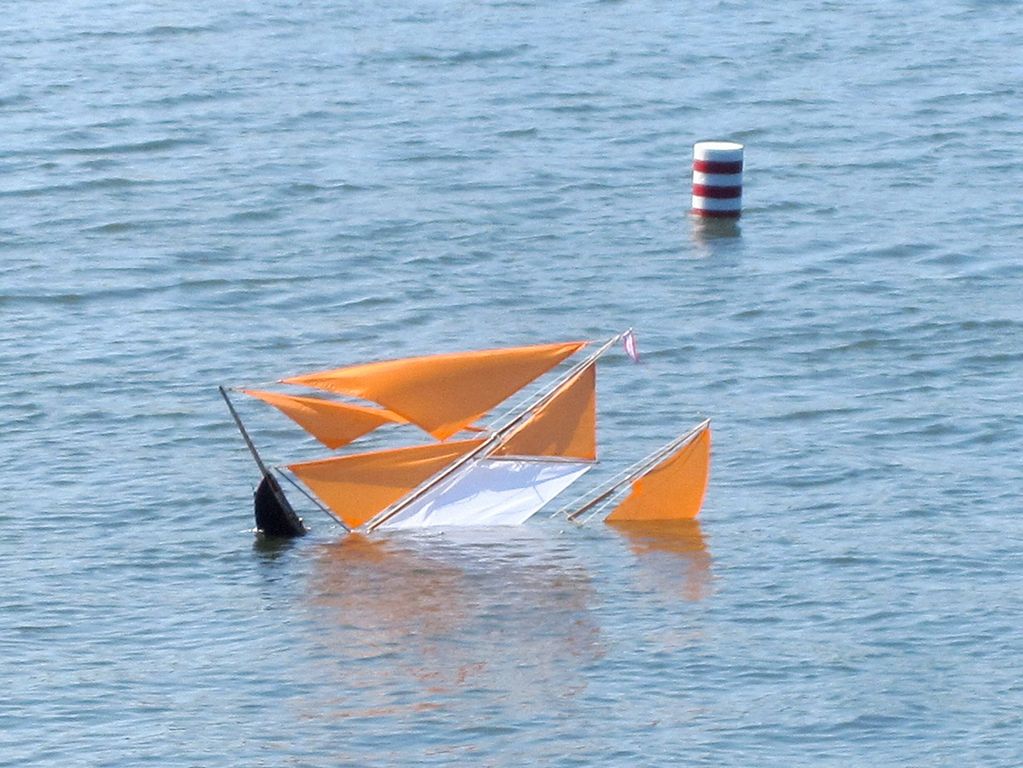Pořadateli přivolaní potápěči můj model po marných pokusech najít jej ze člunu nakonec vylovili, když se jeden z nich odhodlal na průzkum dna. Kupodivu na to, kolikrát přes něj asi přejela kotva, vypadal model dobře. Plachty dokonale umyté, avšak nepotrhané. Jen palubní dekly vzaly zasvé (jeden rozlepený byl druhého dne nalezen).
