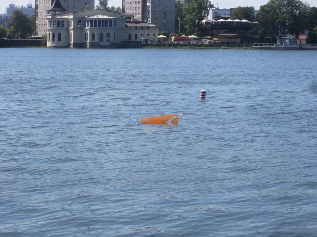 Po zhruba deseti minutách se do podobných potíží dostal Zoolkutter běloruského modeláře Siarheie Ermakova. Ve vlnách za neustálého nabírání vody začal dělat malá kolečka. Z paluby svážecího člunu jsem jej zachránil již v tom posledním, po kterém by následoval mého Benjamina W. Lathama ke dnu, jen na větší hloubce.