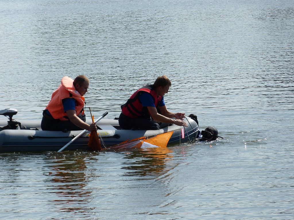 Ač jsem byl našinci hecován k provizorní opravě modelu, byl jsem celkem rád, když jsem ho mohl dát vysušit a na zbytku jízd se nepodílet. Až v klidu domova jsem prozkoumal škody na elektronice: Servo kormidla odešlo do věčných lovišť hned a jeden z navijáků po chvilce provozu nepříjemně začmoudil. Zbývající naviják, přijímač i akumulátor jsou použitelné. Jen si neodpustím kritiku na adresu výrobce, protože se z navijáku Hitec HS-785 HB nedá rozumně vylévat voda, aniž by člověk nemusel odpájet motor z desky plošných spojů.