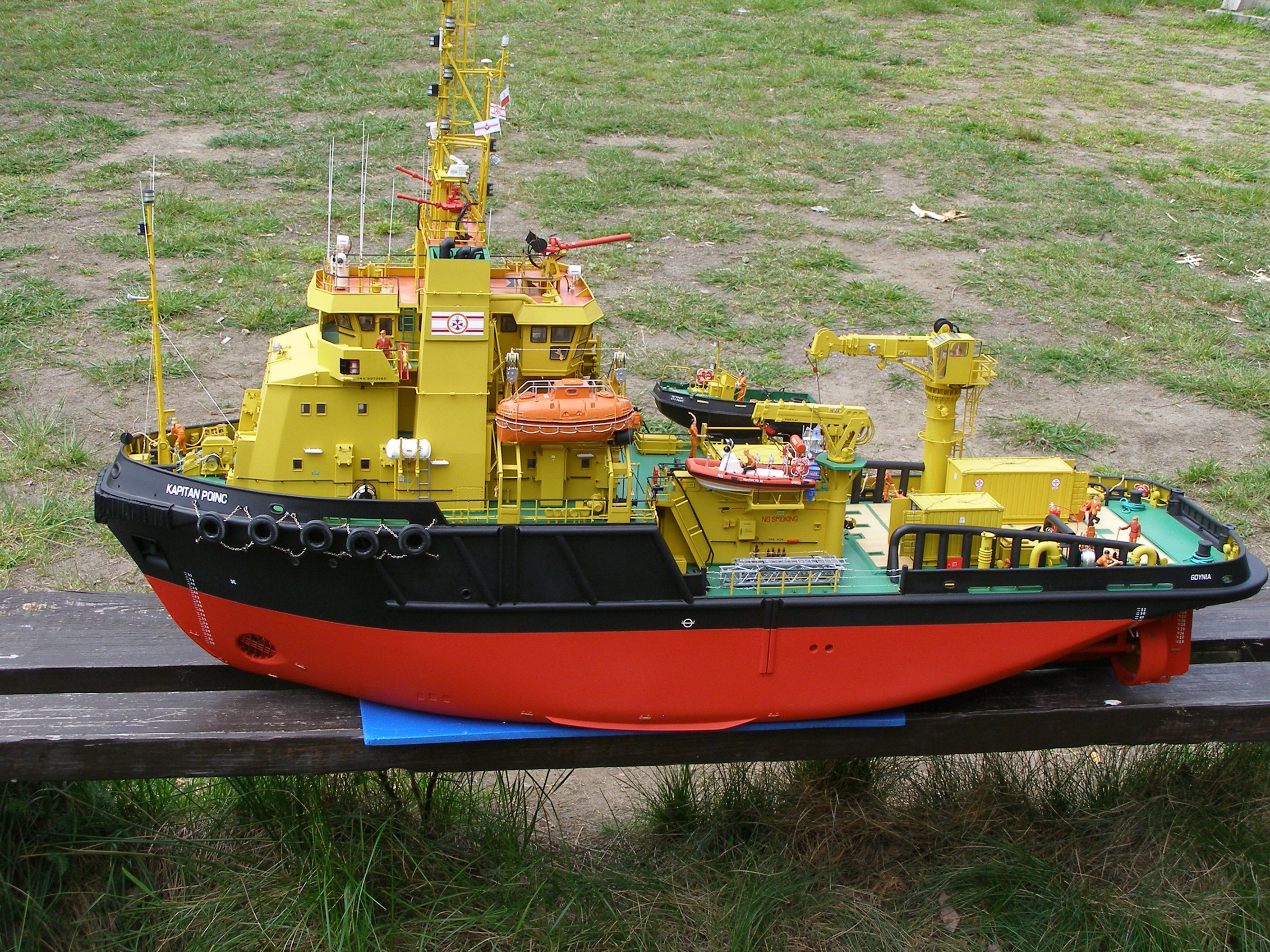 Nejdříve k pojmenování. Loď nese jméno po zakladateli „PRO“ Witolda Poinca. PRO, tedy Polskie Ratownictwo Okrentowe, které tento námořní kapitán založil krátce po skončení druhé světové války. Předloha makety byla postavena v loděnici DORA Shipyard, Gdinia, Polsko. Do služby byla zařazena v roce 1996 a stala se vlajkovou lodí organizace „Morska Sluzba Poszukiwania i Ratownictwa“ - „SAR". Vlastní konstrukce byla navržena v Holandsku. Délka je 49,8 m na vodorysce a 53,4 m přes všechno, šířka 13,6 m, ponor 4,6 m. Posádku tvoří 11 osob. Bližší informace najdete na adrese: http://pl.wikipedia.org/wiki/MS_Kapitan_Poinc