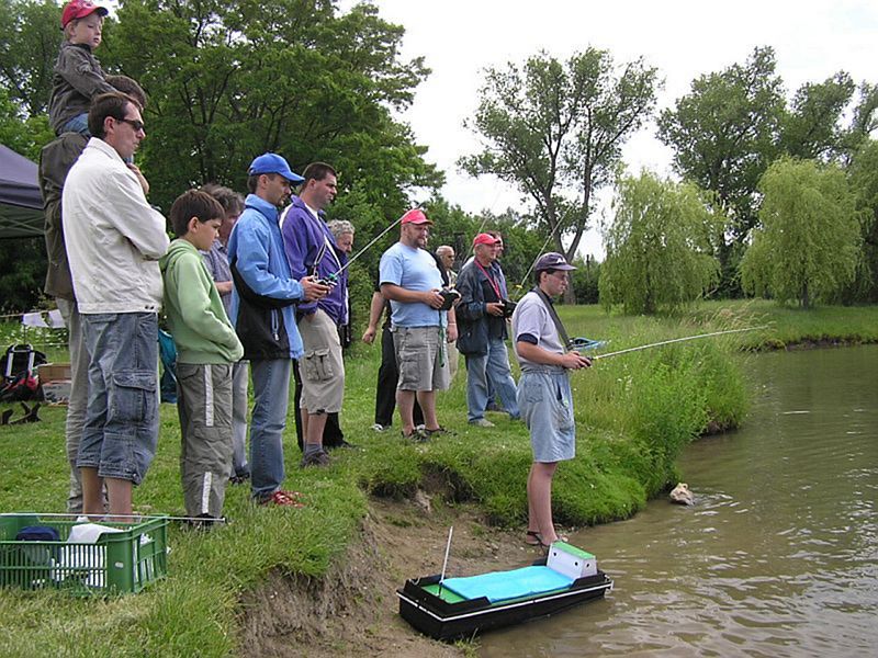 Karlosi, díky). Spolu jsme pomocí bójek stanovili hranici oddělující rybáře od modelářů a také jednu branku, která byla hojně využívána pro zpestření jízd. Ať už se jednalo o