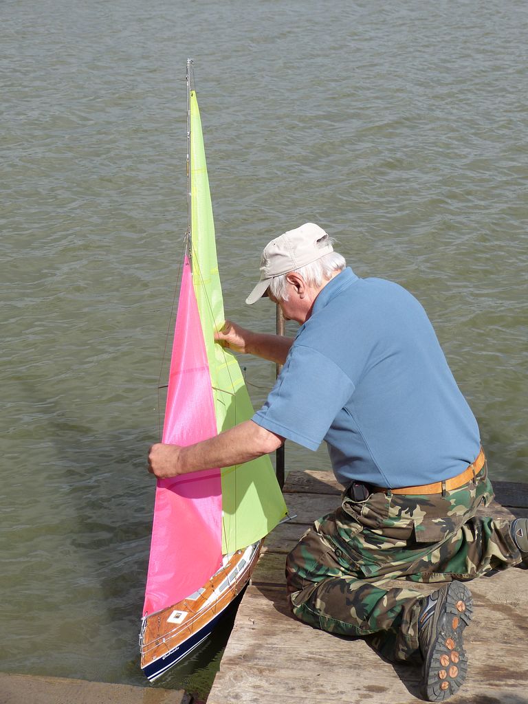 Jelikož bylo startoviště plachetnic až u stavidla, znamenala cesta kolem startoviště F4-A ke startovišti bodovaných maket pořádnou procházku, a tak jsem každý krok vážil. Když nadešla chvíle další sobotní jízdy plachetnic, doslova jsem s plachetnicí v ruce zakopl o Jiřího Špinara, který již nějakou chvíli vedl výše zmiňovanou schůzku