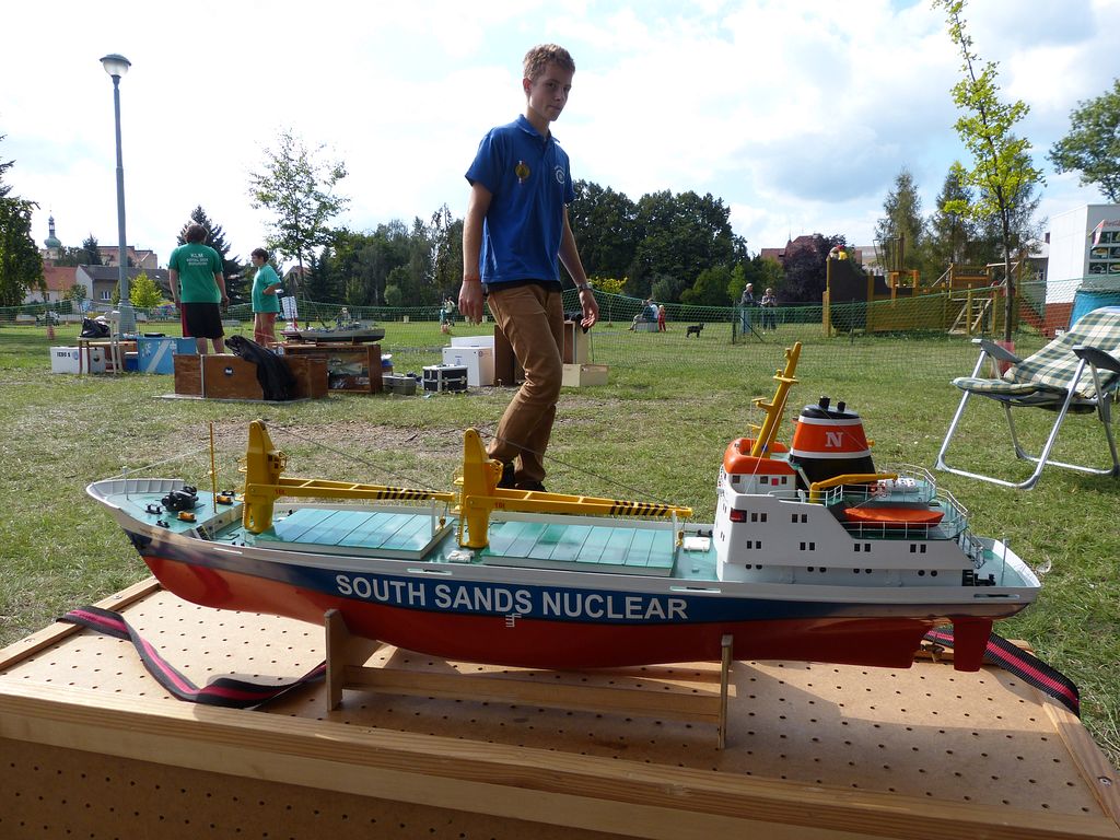 Přestože většinou od plachetnic sprintuji k modelům parníků, tentokrát jsem dopředu věděl, že toho moc k vidění nebude. Při účasti pouhých dvou strojů se těžko přihodí, aby bylo na vodě 5 parníků naráz a rozhodčí nevěděli, koho sledovat dříve. D.S. Schaarhörn, se kterým Jiří Špinar bez zaváhání porazil St. Canute Standy Jedličky, krátce v podpalubí přímo z bombičky zahořel. Naštěstí to dopadlo dobře a pracná nástavba nijak neutrpěla.