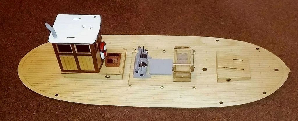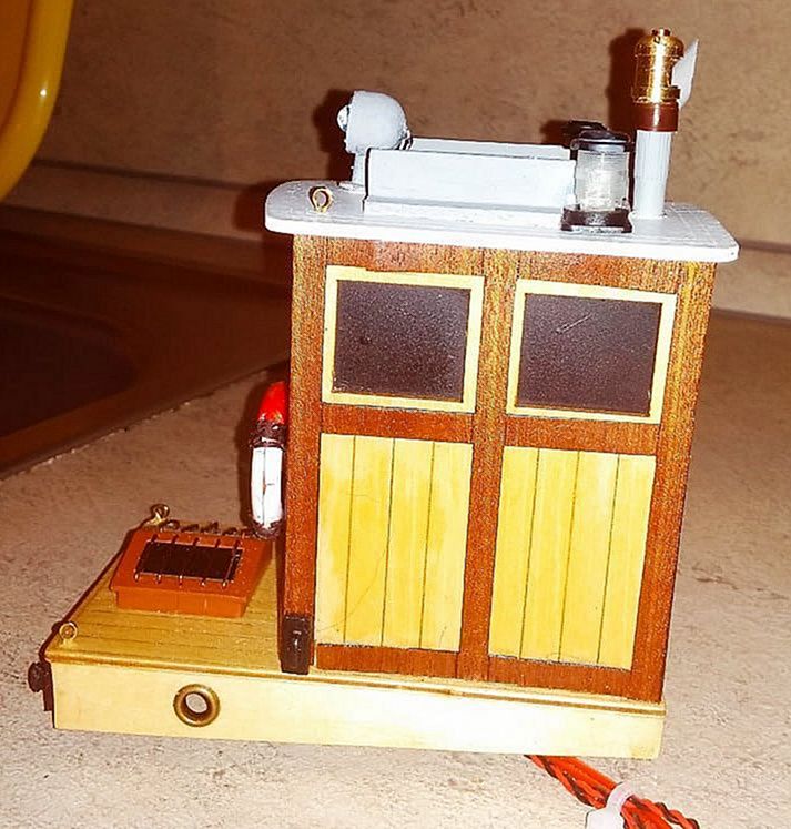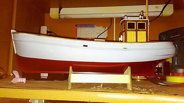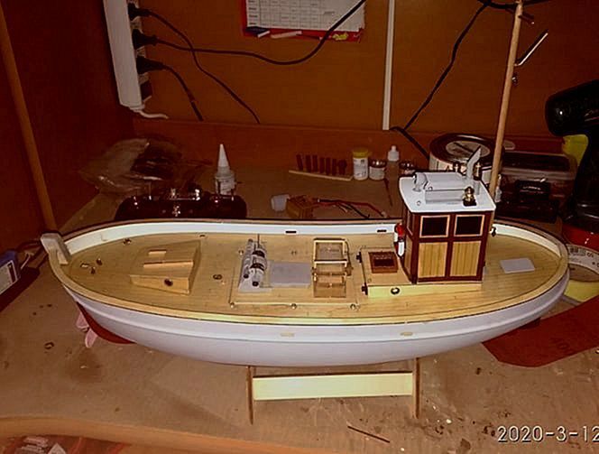 Jednotlivé nástavby (přední světlík, kajuta, naviják, síto) jsou slepeny dle obrázků. Kajuta je osvětlená LED diodami (poziční světla červená a zelená, přední reflektor).