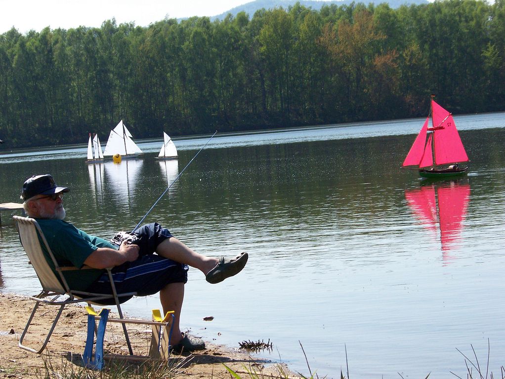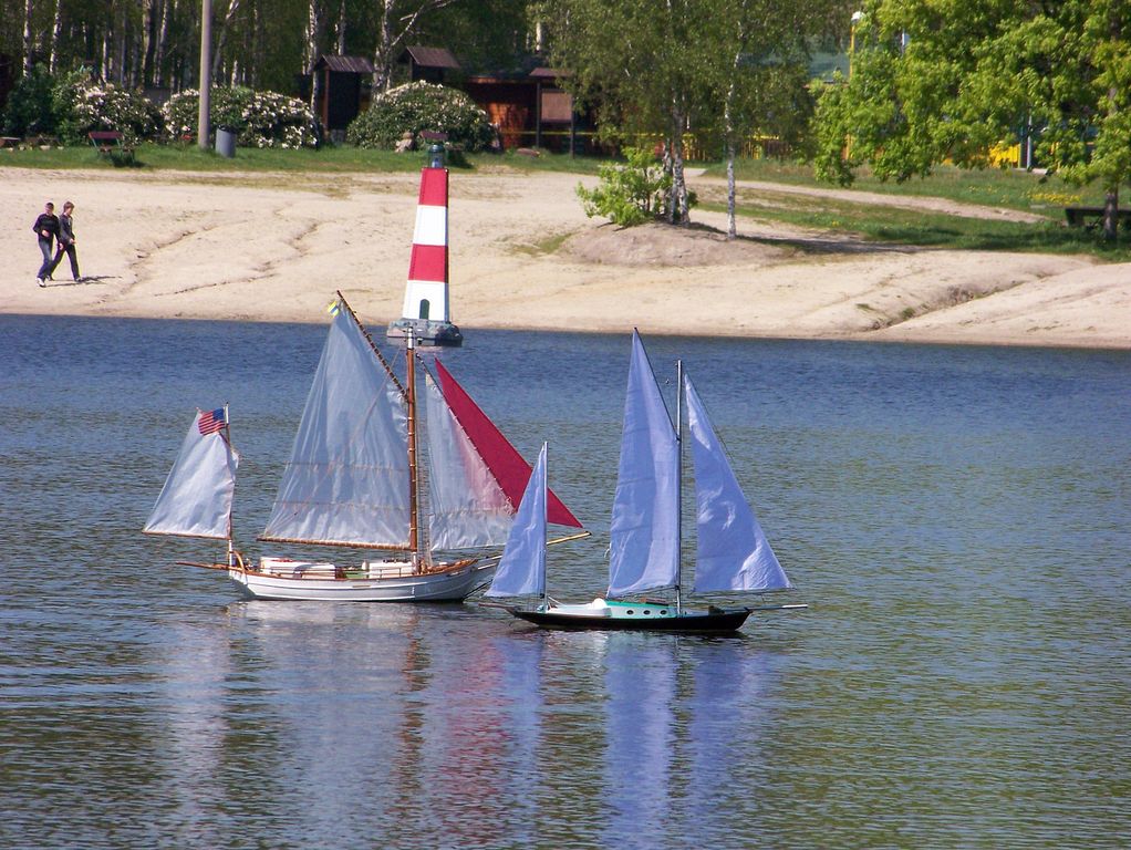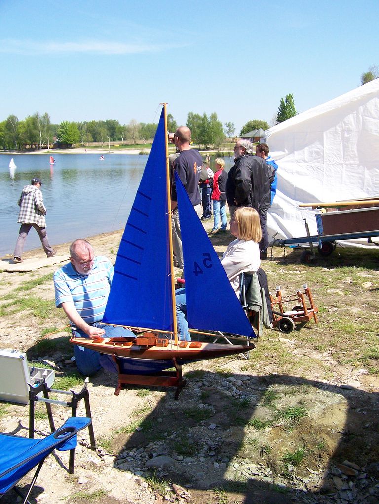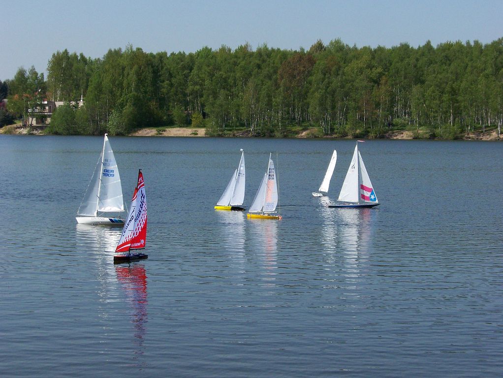 Trochu jsem se při příjezdu lekl, abych náhodou nepřejel hraniční čáru do Německa, ale nakonec jsem zdárně odbočil ke Kristýně. U kempu nastalo dilema, zda se mám vydat hledat ubytování, či zavítat raději k vodě. Druhá možnost zvítězila. Zcela intuitivně jsem přes zákaz vjezdu dojel až na místo činu, což představovalo ujetí dalších 1500 metrů. U vody již bylo vše potřebné nachystáno a někteří soutěžící pilně trénovali na vodě. Nějakých 200 metrů od startoviště byl v restauraci vyhrazen prostor pro plachetnice modelářů z pěti zemí.