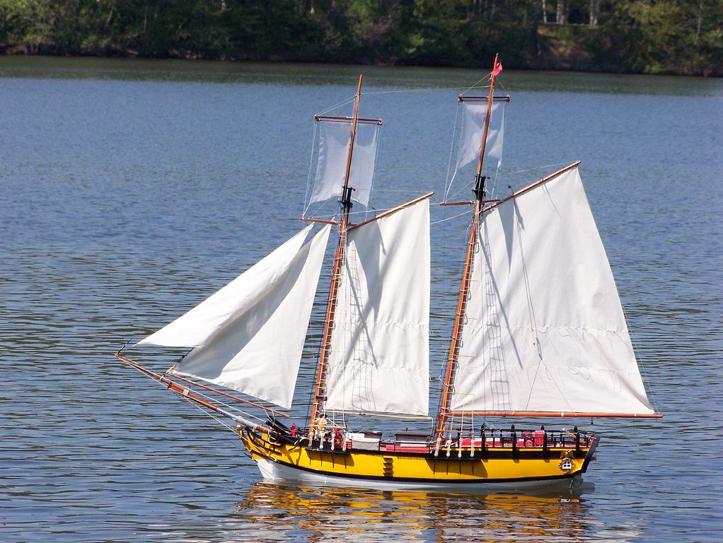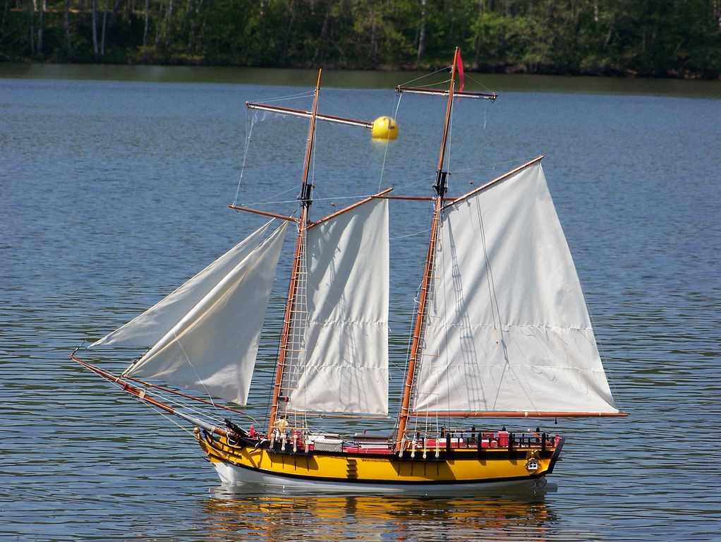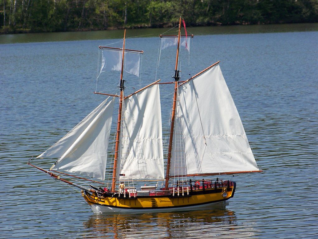 Sestavení Legend bylo záležitostí několika minut, přičemž jsem opět vývojáře proklínal za to, že stěžeň sám na modelu nedrží. I stalo se, co se muselo stát – při nečekaném poryvu větru se ještě neupevněný stěžeň vytrhl a vzal s sebou i plastové uložení paluby. Opětovně se ukázalo, že mé nervózní pocházení po domě a vzpomínání si na zapomenuté věci, mělo své opodstatnění, protože jsem nepřibalil ani kapku lepidla. Co byste také čekali od člověka, který zatavoval konce lanoví proti třepení teprve hodinu před odjezdem. (Dovolím si napsat malou radu pro nekuřáky, kteří též nemají zapalovač – pájecí pistole poslouží stejně dobře.) Po krátkém přemýšlení, zda má vzniklá škoda nějaké řešení i bez lepidla, jsem dospěl ke kladnému závěru. Bohatě stačilo uchycení stěžně i se stěžněm vrátit zpátky do výklenku v palubě a stěžeň řádně vyšponovat utažením lanoví.