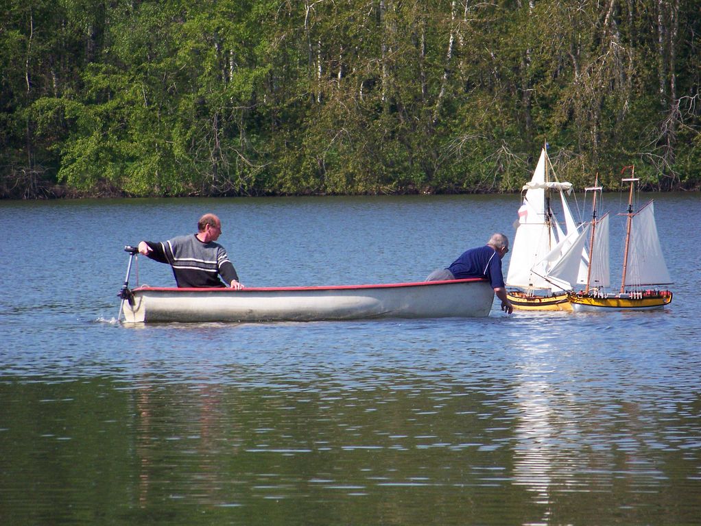 Zde však došlo k situaci, která se černě zapíše do modelářské kroniky. Zatímco záchranný člun mířil k mé Legend, střetl se s plachetnicí Anitra, se kterou do té doby úspěšně jezdil Tujano. Ke vší smůle došlo k poškození kosatky (a možná i k dalším škodám, které na dálku nebyly vidět). Tujano neváhal ani minutu a zcela v afektu vyrazil okamžitě domů. Svým způsobem mám výčitky svědomí, že ke všemu došlo během záchranné mise mého modelu, na druhou stranu se utěšuji tím, že se to mohlo stát kdykoli jindy, protože podobných záchranných jízd proběhlo kolem dvaceti.