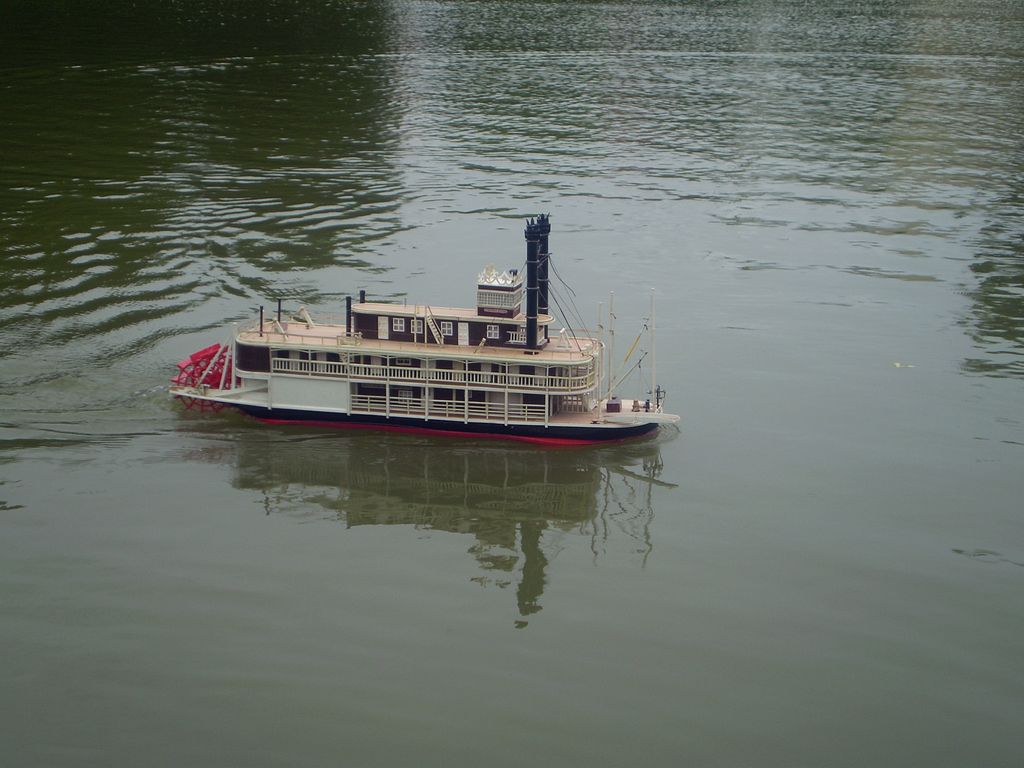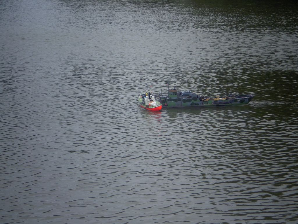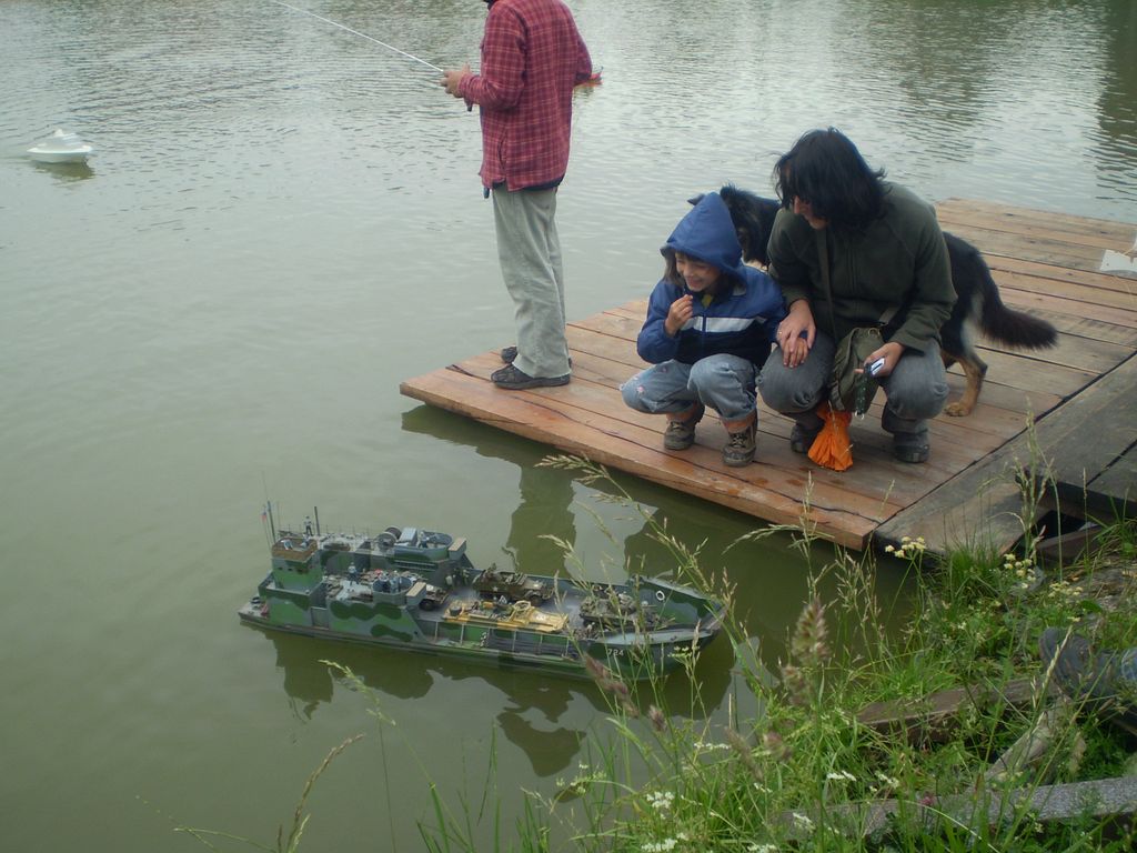 Mezitím se obloha trošku vyjasnila a padlo rozhodnutí dát na vodu i další modely. A tak se na hladině objevil Thoaban, sice nedodělaný, ale to nic neubralo jeho jízdním vlastnostem. Jirka dal na vodu svůj Western River a i ostatní modeláři nakonec odrazili od mola a na vodě se odehrával sice co do počtu lodí spíše komornější, ale zato veselejší lodní rej.