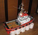 Postupně bylo doděláno několik detailů na střeše remorkéru. Výborným materiálem je starý tiskařský plech. Musí se ohýbat velice opatrně, aby se nezlomil, ale „nerezové “ skříňky se z něj dají udělat velice snadno a rychle. Palubu remorkéru ozdobily doplňky od Jardy Jungmana. Záchranné kruhy jsou vyrobeny z depronu.
