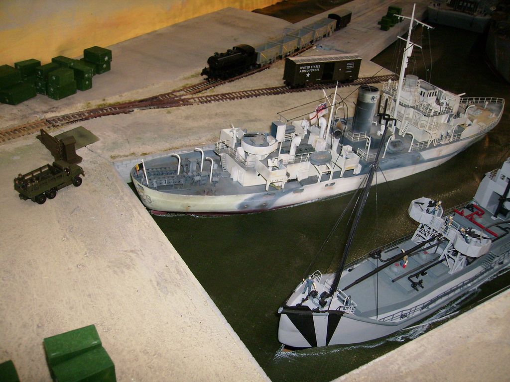 Zase tam byli Francouzi s diorámou Cherbourgu s loďmi a přistávajícími letouny, pidlili tam nějaké lodičky na další zpestření svého díla a tak jsem s nimi trochu komunikoval. Uměli jsme asi tak stejně lámaně anglicky, ale naštěstí stejná slova, a tak jsem si nafotil korvetu a trawler, co bych chtěl do jara udělat. Od Pana Modeláře (loni předváděl vystřelování torpéda stlačeným vzduchem) jsem vydyndal nákres stroje s rotačním šoupátkem, ale asi se do toho vbrzku nedám - mám hrozně jiné práce.