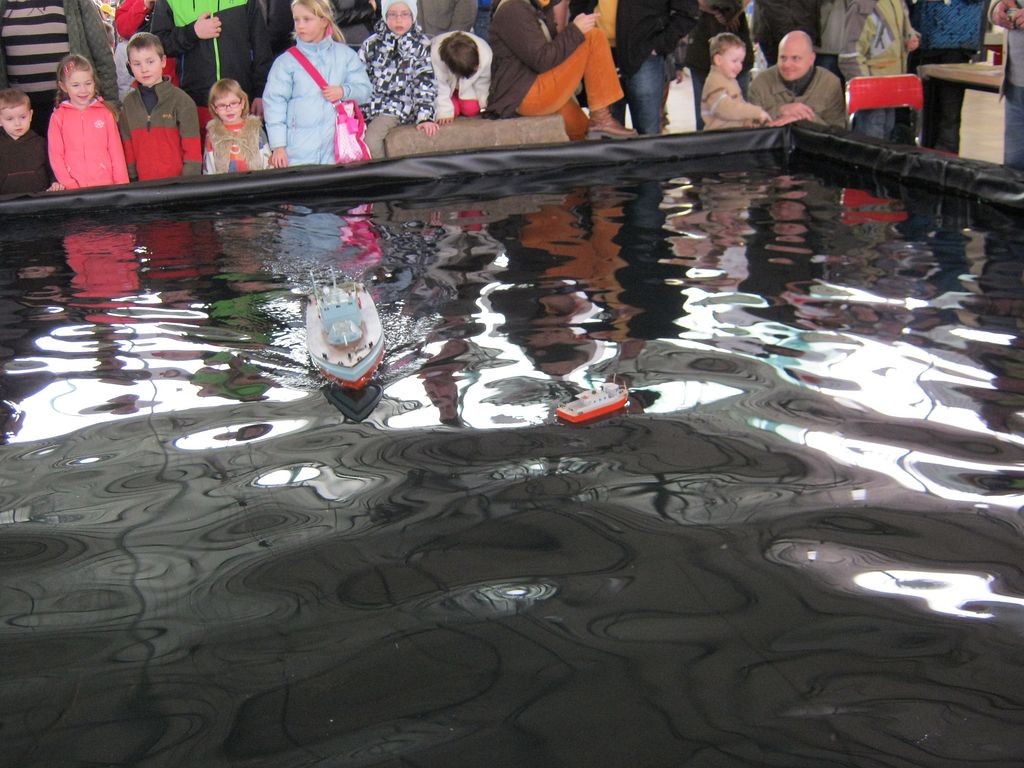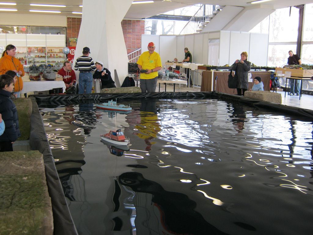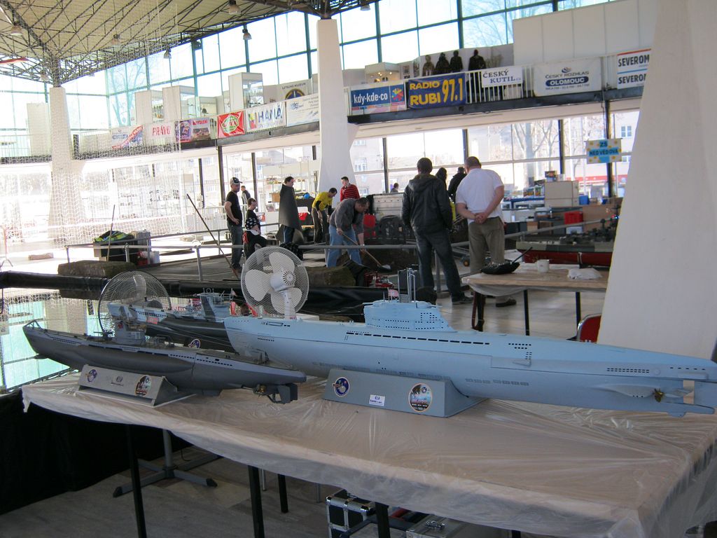 Aspoň že bazén zůstal ve velikosti loňského roku. Návštěvníci si ale stěžovali, že ponorky na černé jezírkové folii nejsou vůbec pod hladinou vidět, což byla velká škoda, na jinak pěkných ukázkách těchto modelů. Já osobně jsem toho moc neviděl, kolem bazénu se vždy, když tam něco plavalo, utvořila hradba lidí. Já jako účinkující jsem pouštěl mašinky na nejmenším ze tří kolejišť, takže jsem neměl nejmenší šanci cokoli zahlédnout. Tím pádem jsem fotil jen v pátek, jinak už nebyl žádný čas, proto jsem letos využil služeb bratrance a doplnil fotogalerii jeho snímky. Tím pádem je fotografií více a snad se budou i některé hodně podobat, za co se omlouvám.