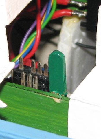 Propojení nástaveb pomocí dvou Modela konektorů umístěných v trupu na sloupku se plně osvědčilo. Manipulace s nimi je „bezbolestná“. Na límec vstupního otvoru do trupu jsem ještě přidělal i tlačítkový vypínač. Je to podstatně lepší řešení, než spojování či rozpojování konektorů od akumulátoru.