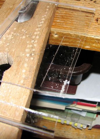Vyříznul jsem otvor pro sklo a již výše popsaným postupem jsem vlepil rámečky...